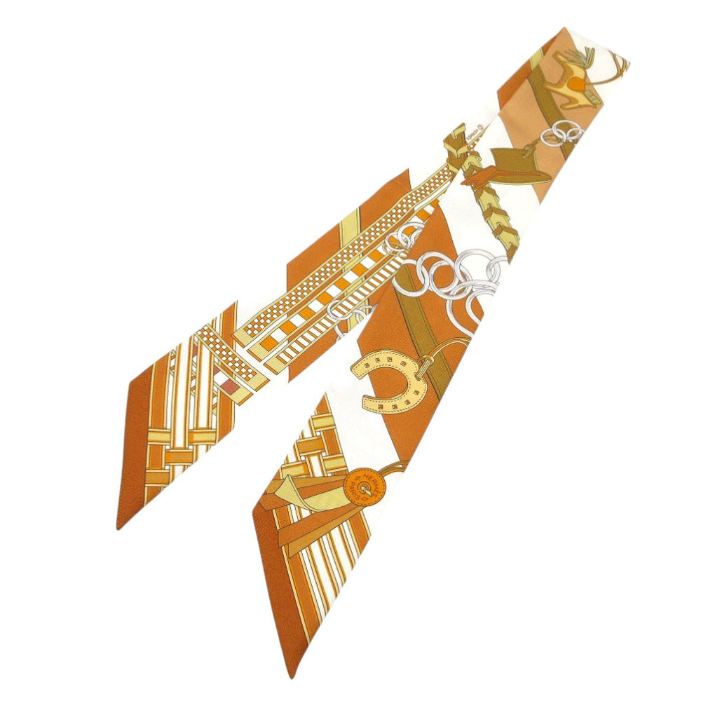 美品 エルメス ツイリー 馬勒とチャーム スカーフ シルク キャラメル/ブラン/ブロンズ 0327【中古】HERMES