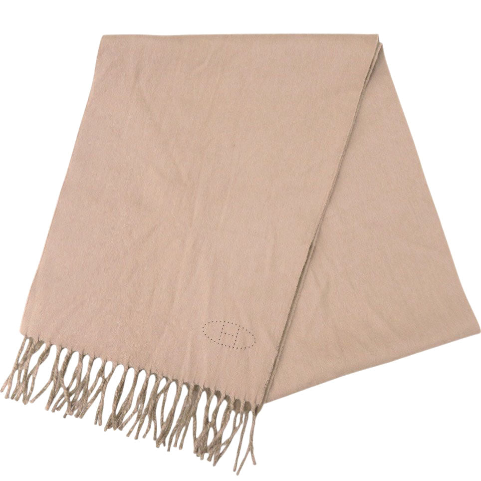 美品 エルメス エブリン パンチングマフラー フリンジ カシミヤ ベージュ 0788【中古】HERMES