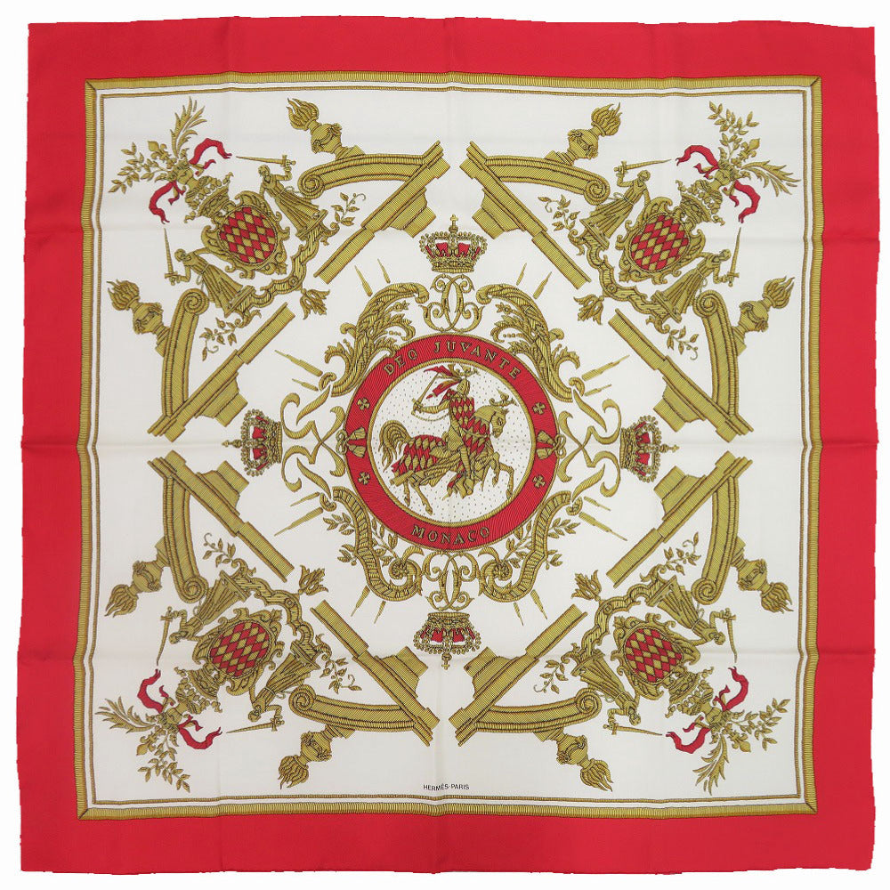 新品同様 エルメス カレ90 DEO JUVANTE MONACO シルク レッド ホワイト ゴールド スカーフ 1118【中古】HERMES