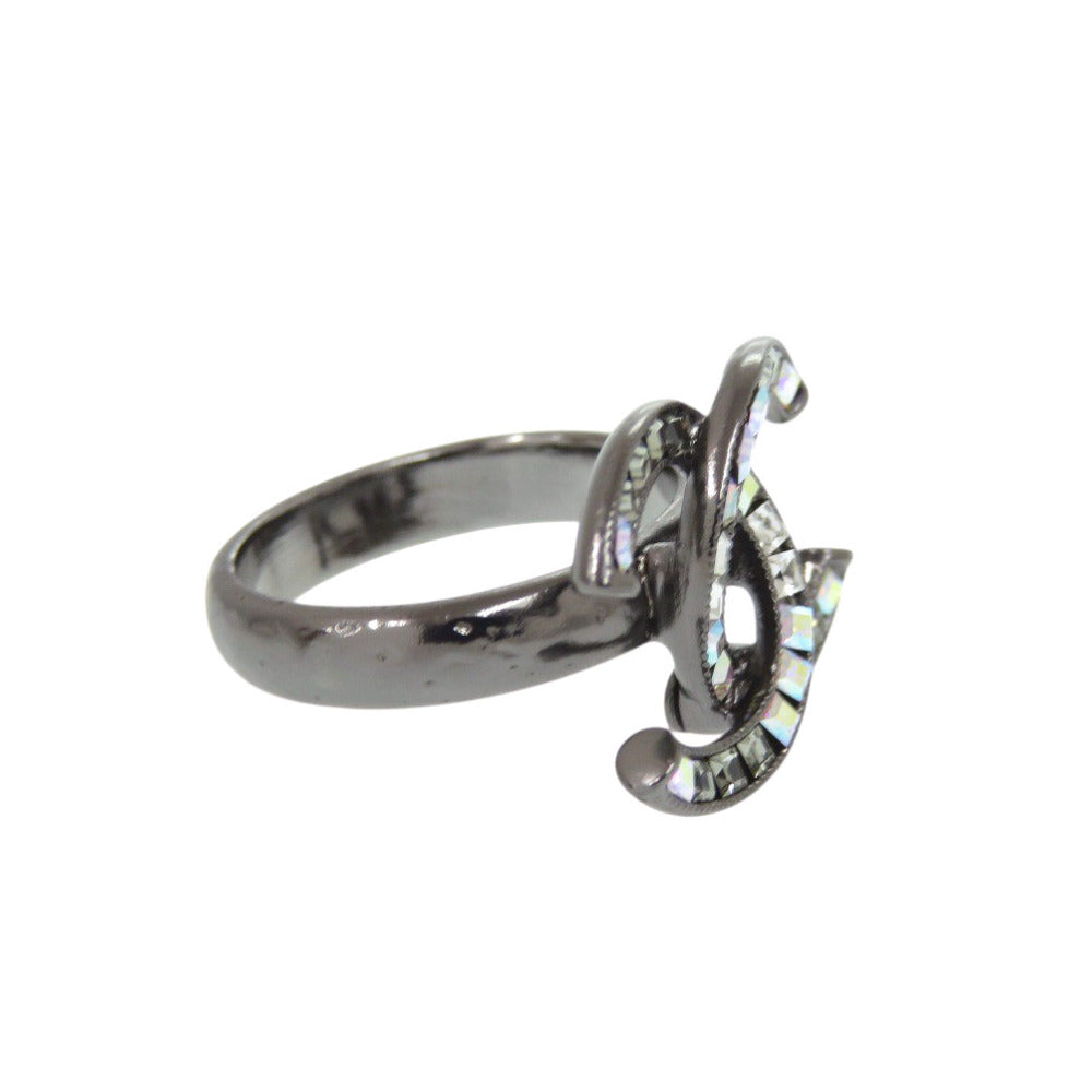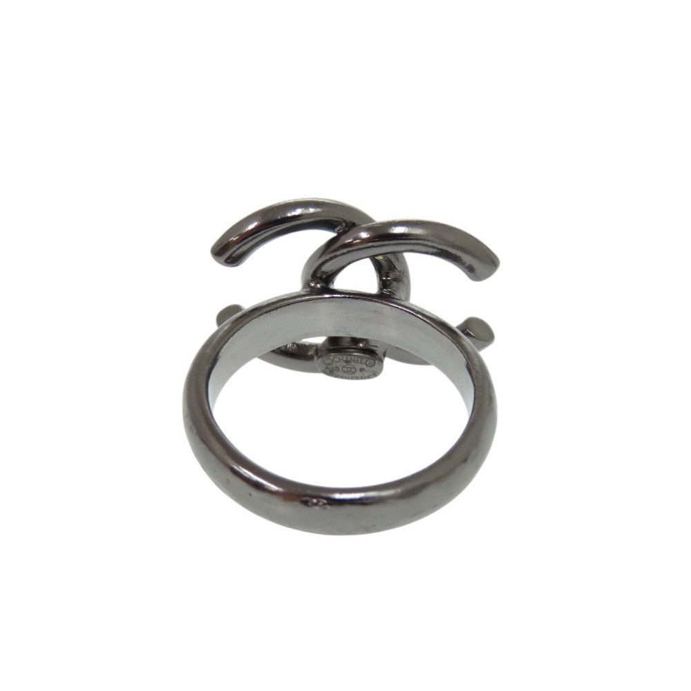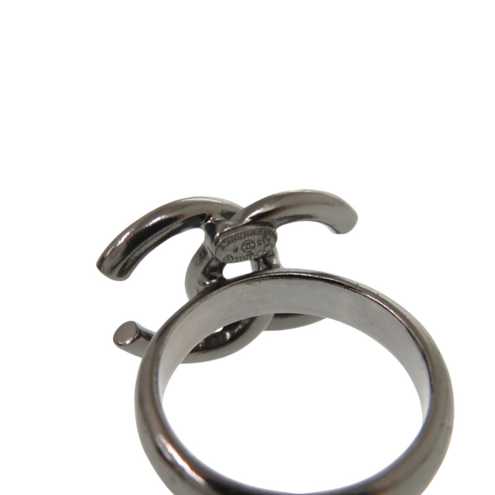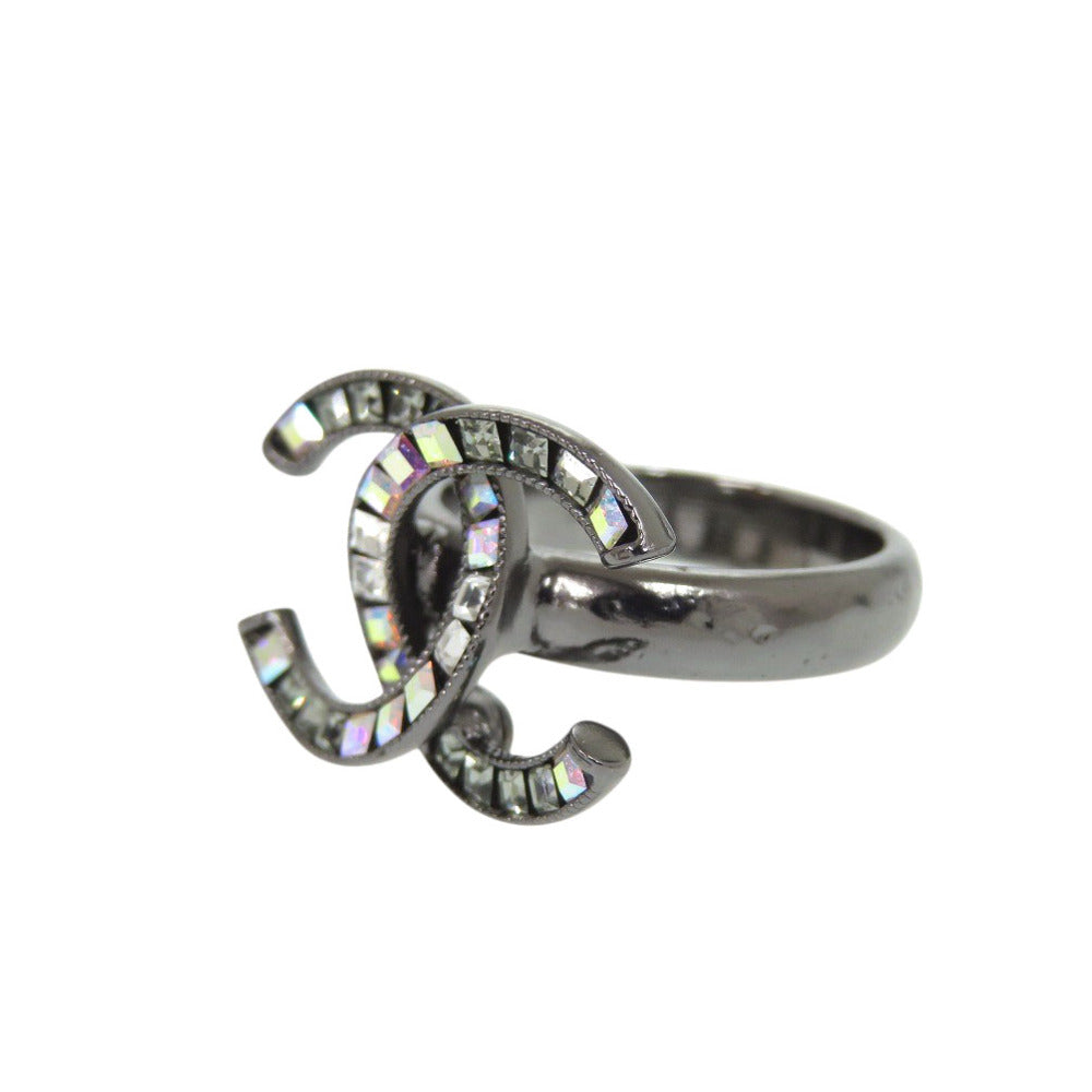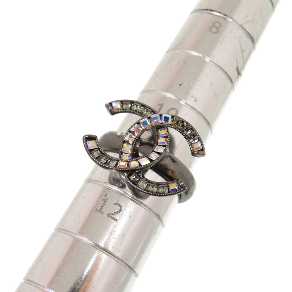 美品 シャネル ココマーク A15P 11号 メタル ラインストーン ガンメタル リング 指輪 シルバー 1471【中古】CHANEL