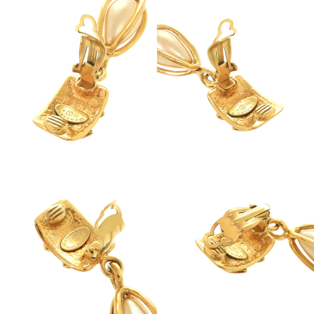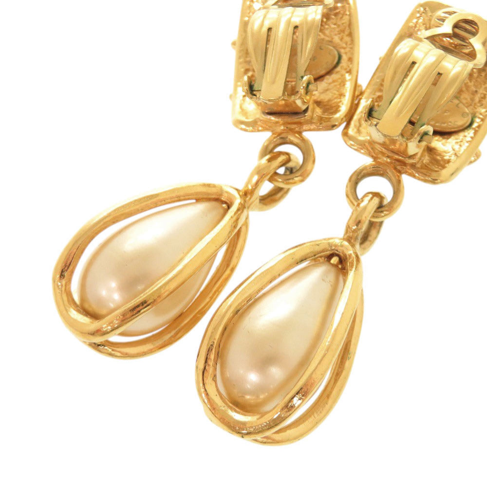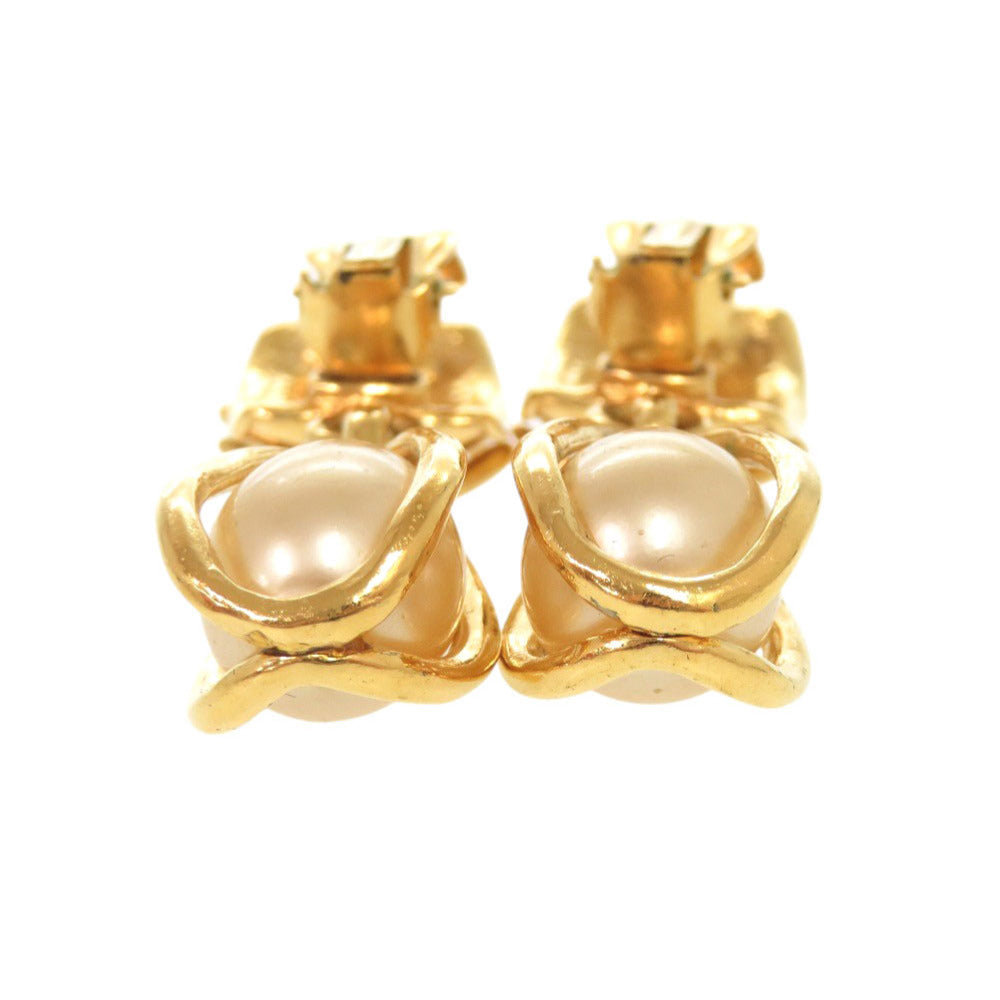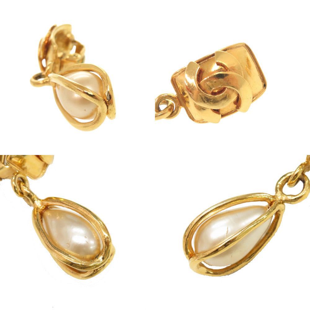 美品 シャネル ヴィンテージ ココマーク メタル フェイクパール ゴールド イヤリング 0070【中古】CHANEL