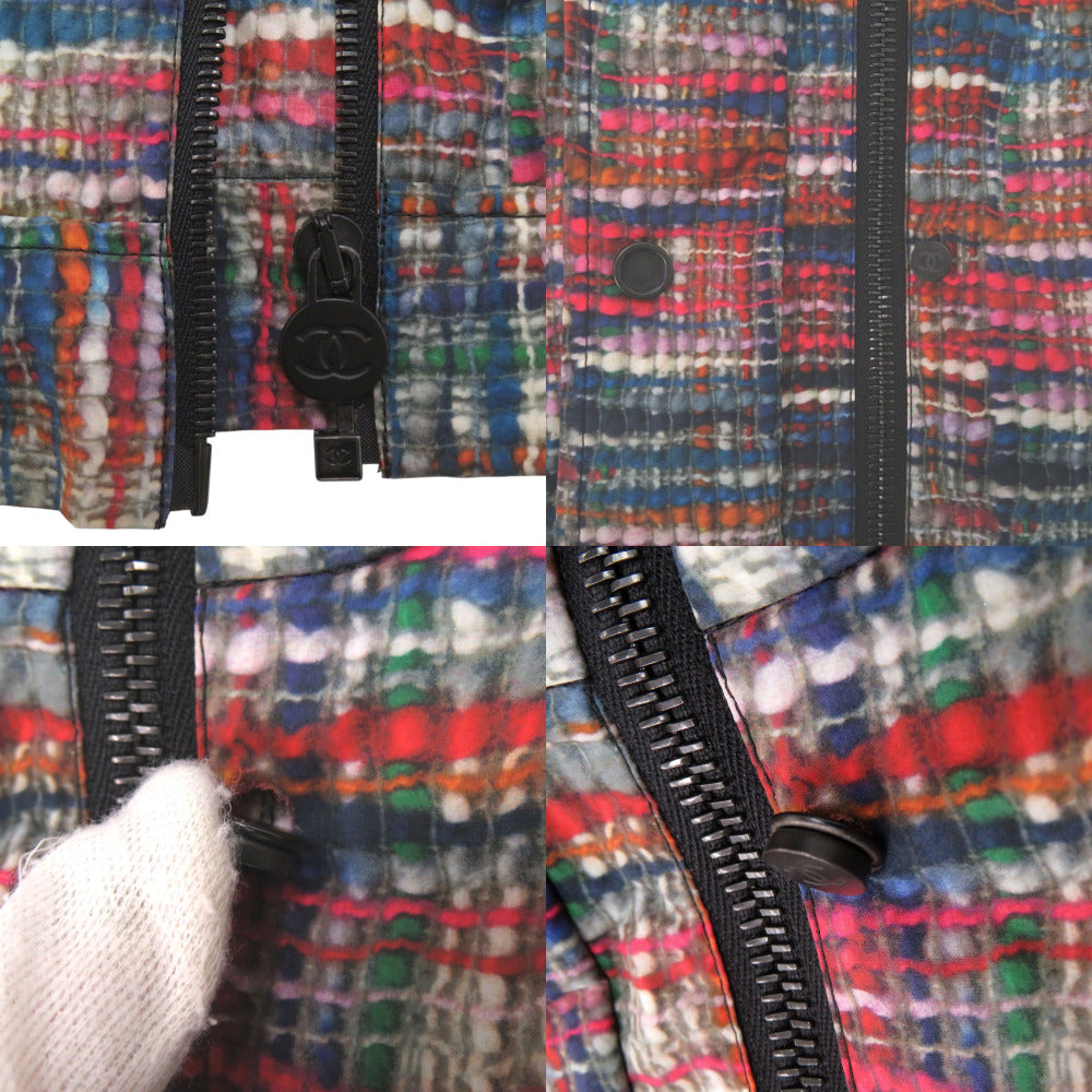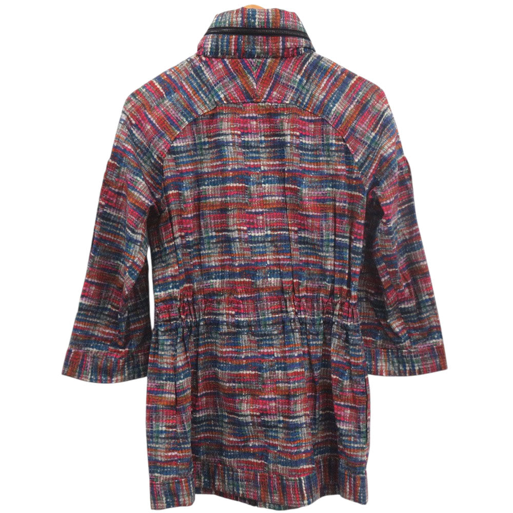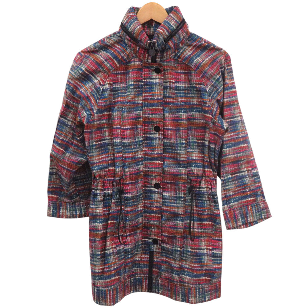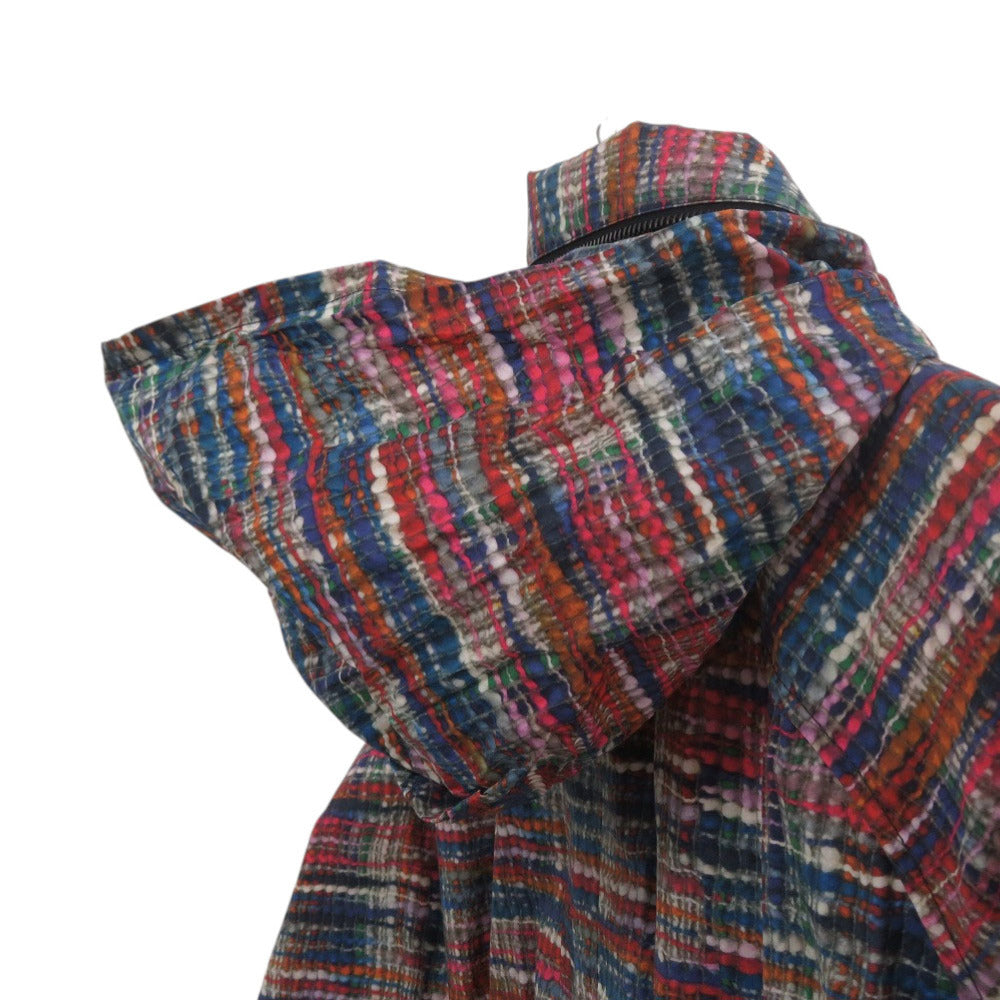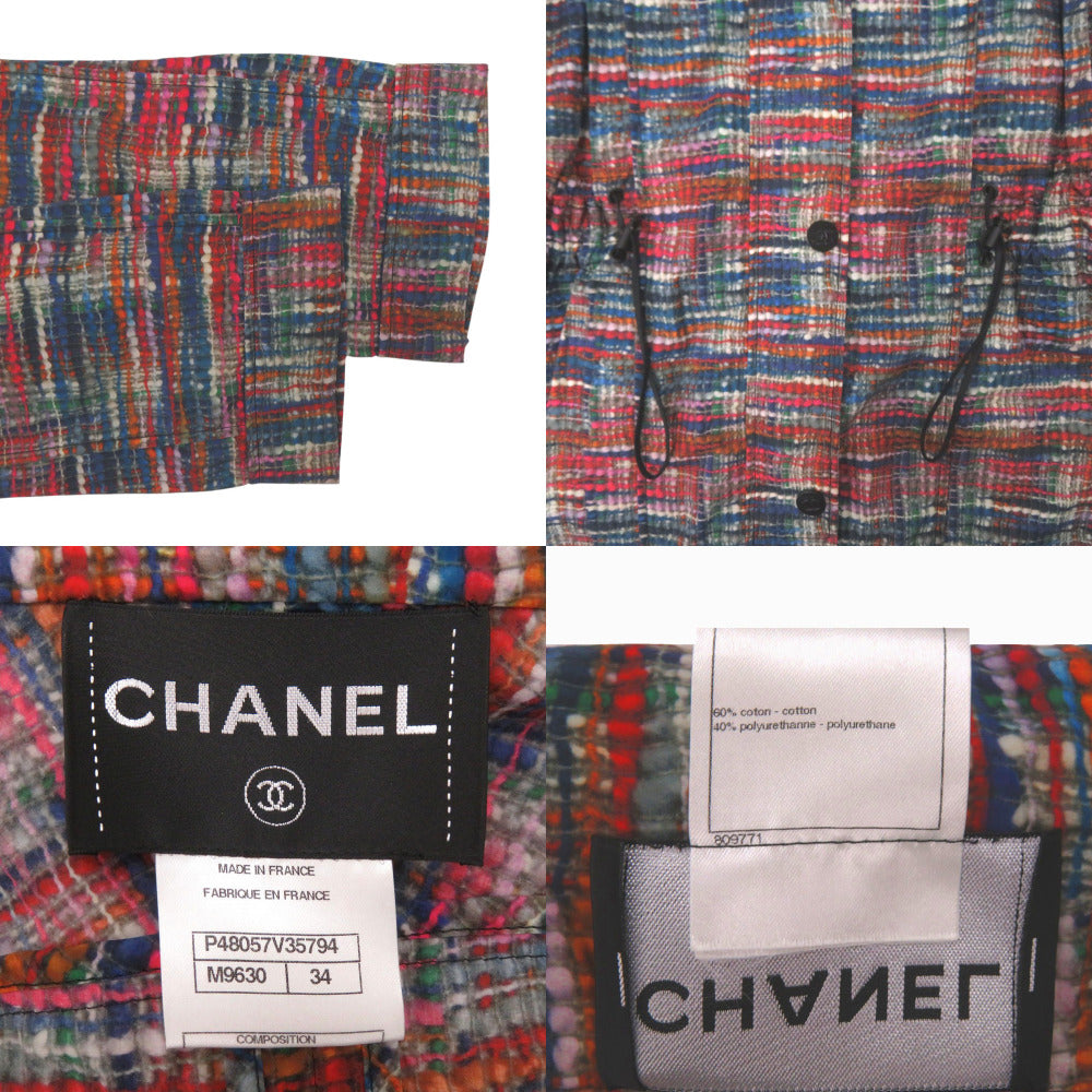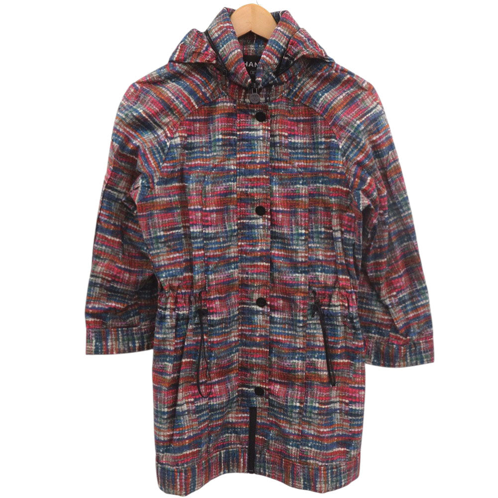 美品 シャネル ココボタン ヴィンテージ ツイード レインコート ウエストドローコード P48057V35794 サイズ34 コットン ポリウレタン ブルー レッド オレンジ アウター 0504【中古】CHANEL