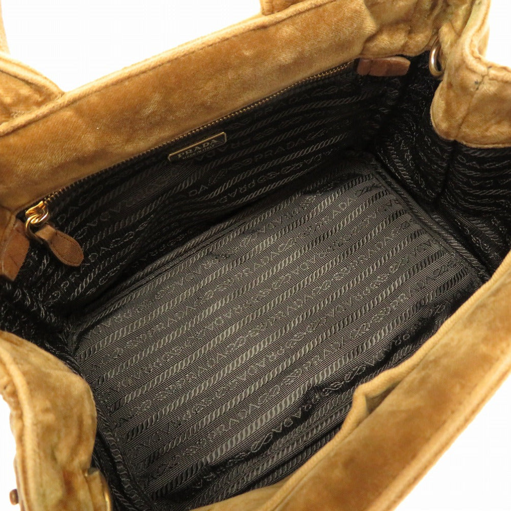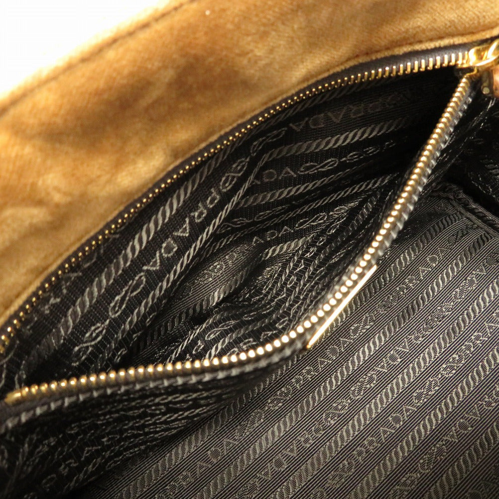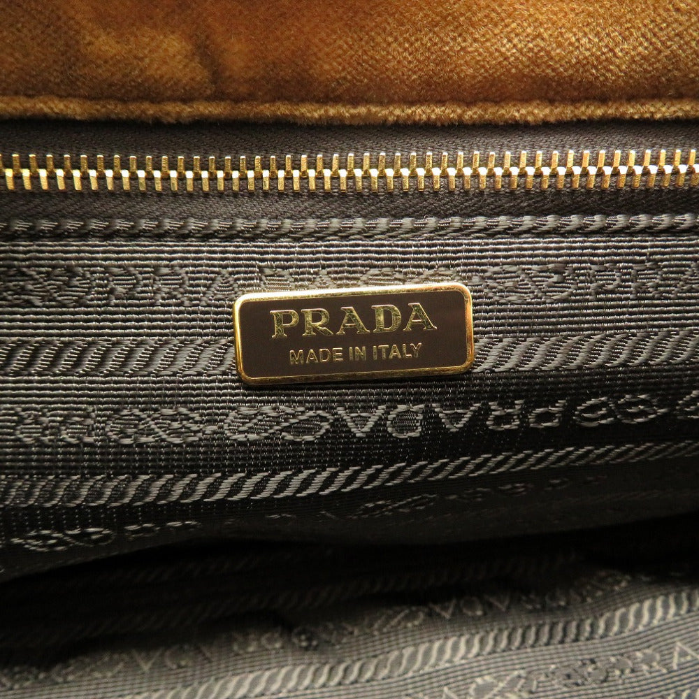 美品 プラダ ミニ カナパ ベルベット ベルトモチーフ 1BA038 2WAY ハンドバッグ バッグ 茶 0020 【中古】 PRADA