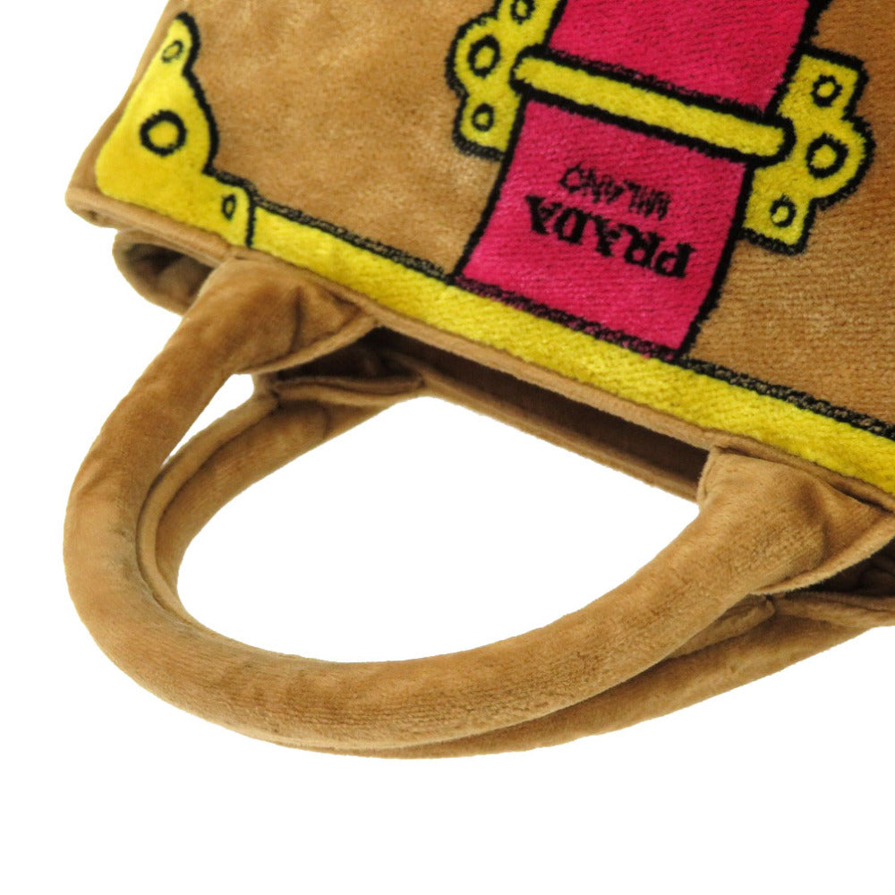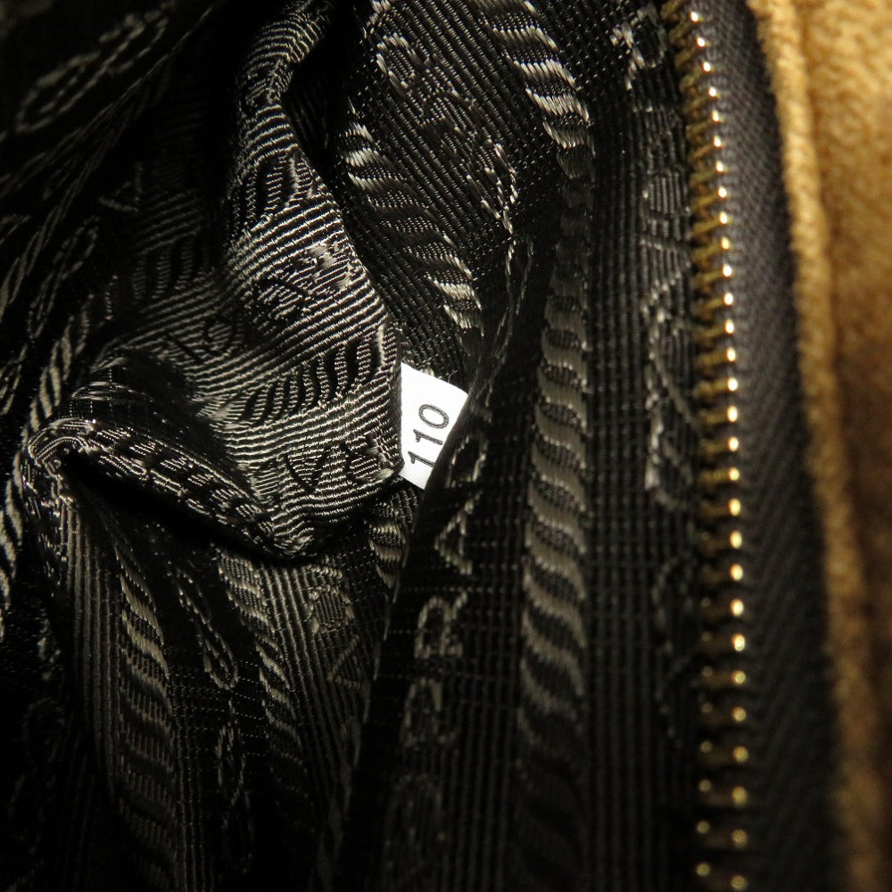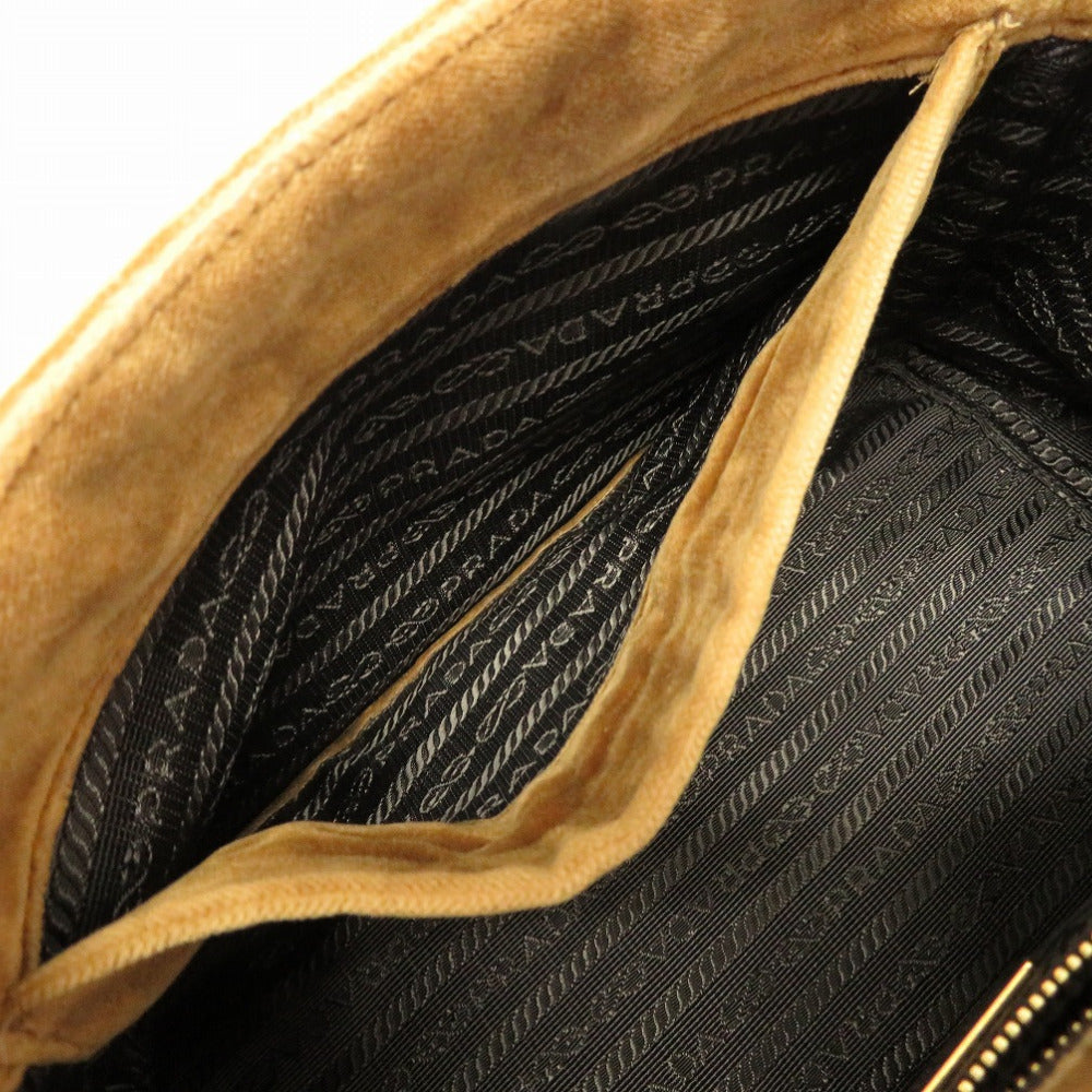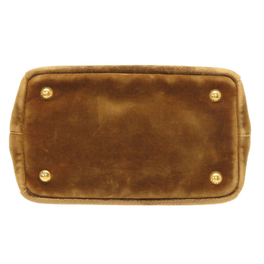 美品 プラダ ミニ カナパ ベルベット ベルトモチーフ 1BA038 2WAY ハンドバッグ バッグ 茶 0020 【中古】 PRADA