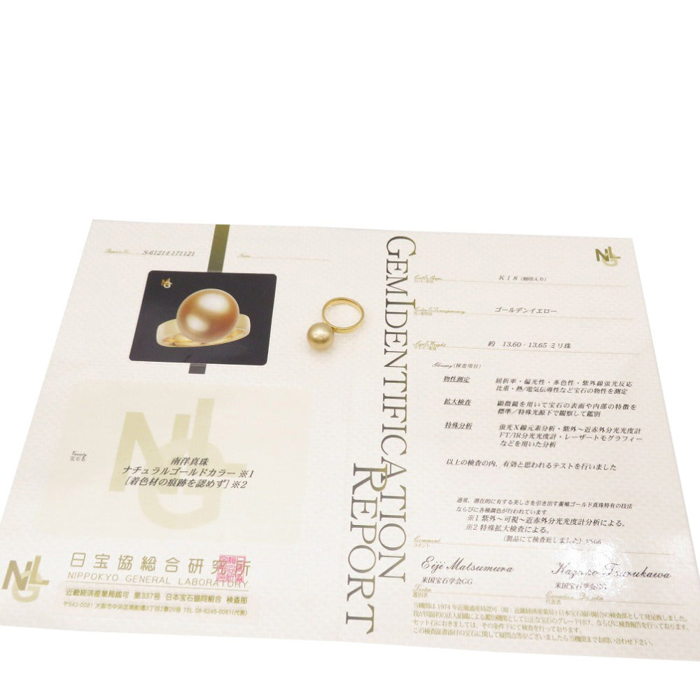美品 タサキ ゴールデンパール 13.6mm K18YG リング 指輪 南洋真珠 16号 ゴールド ジュエリー アクセサリー 0010【中古】TASAKI レディース