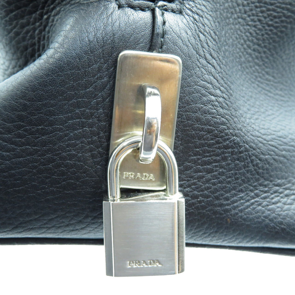 美品 プラダ レザー ハンドバッグ トートバッグ ブラック 黒 シルバー金具 鍵 カデナ クロシェット 0014【中古】PRADA