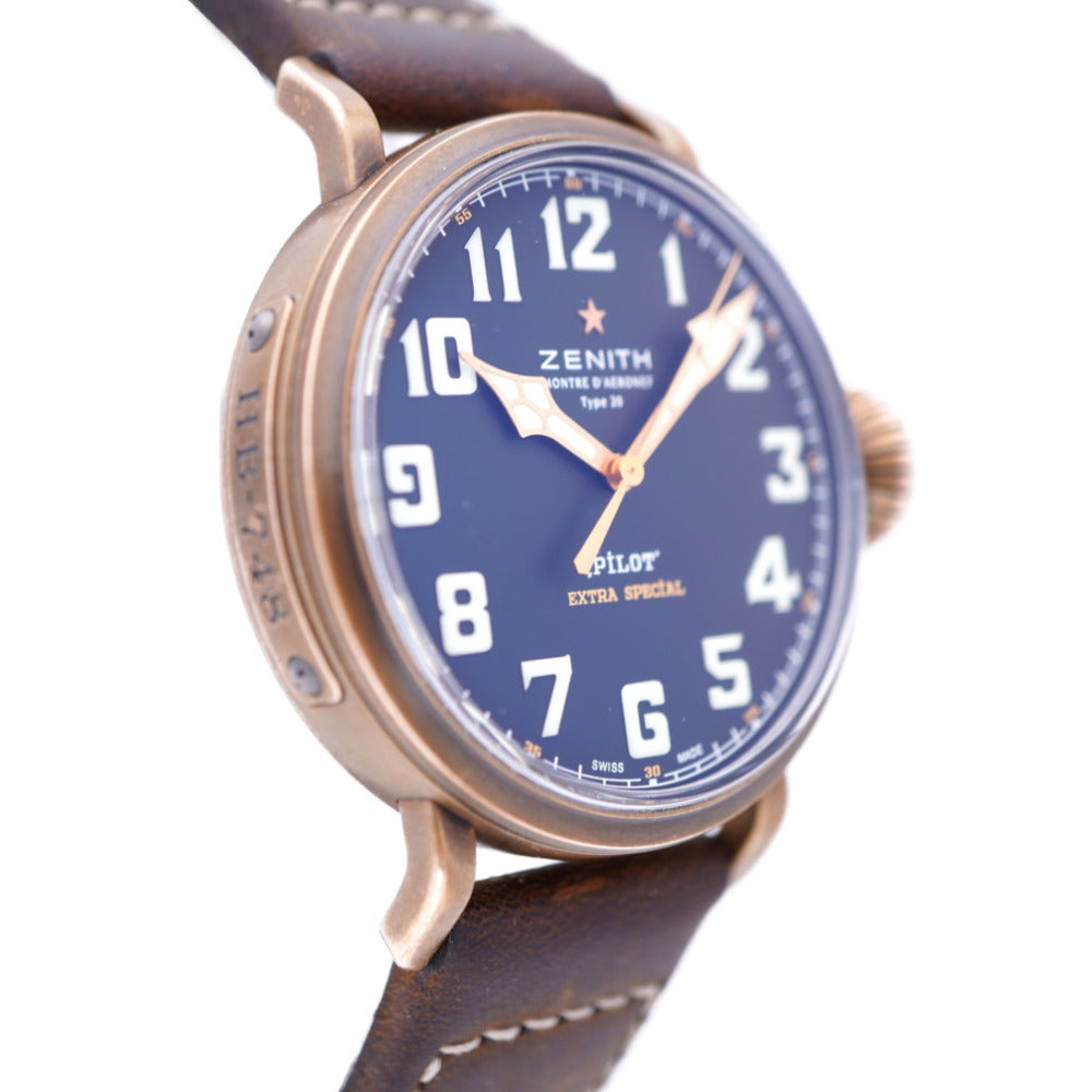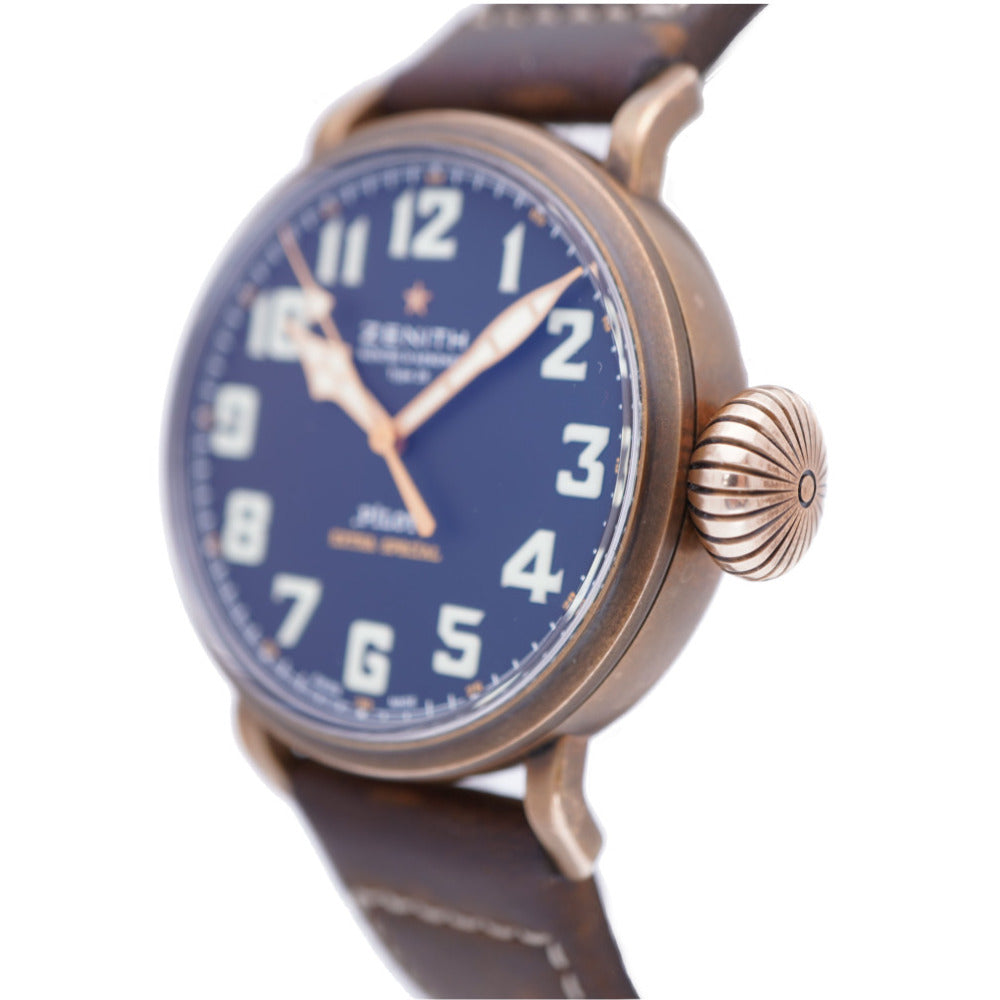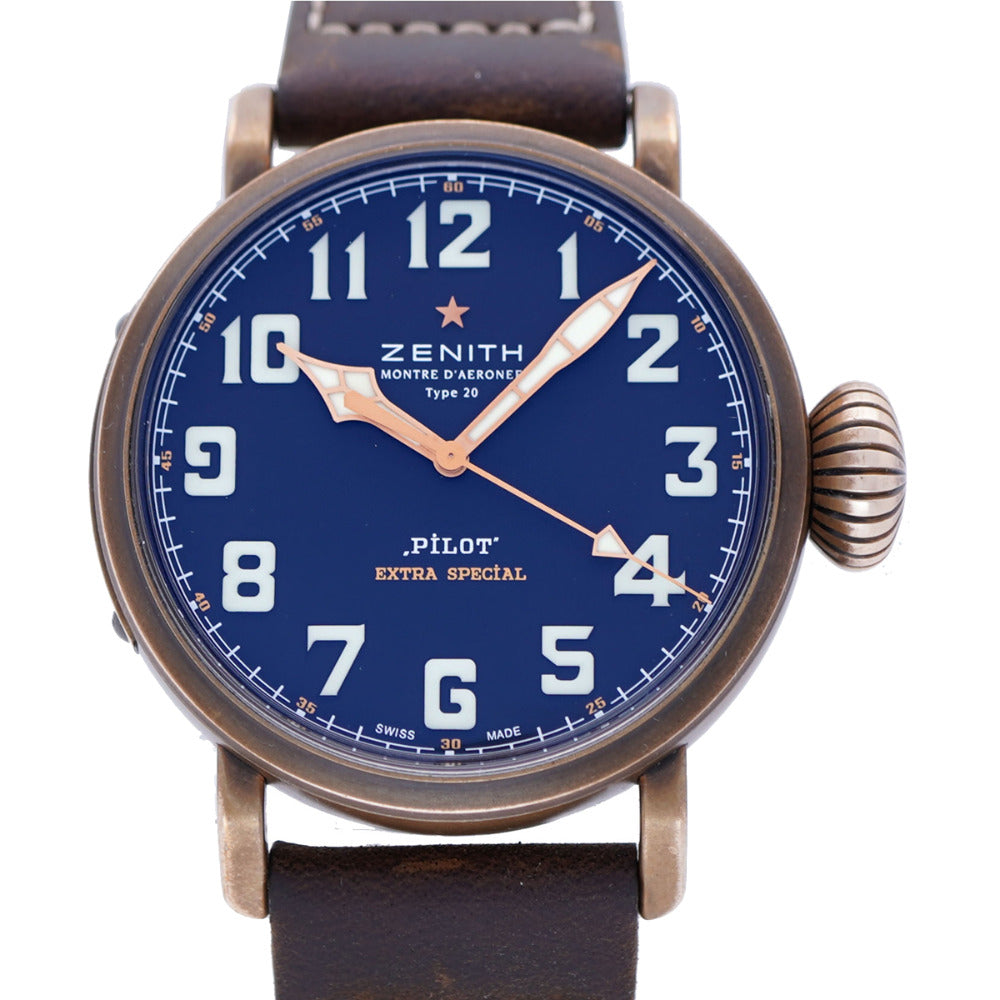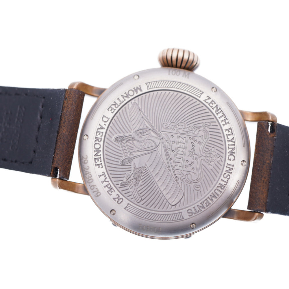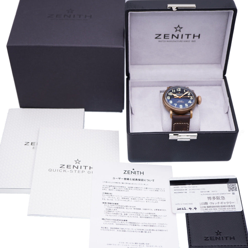 美品 ゼニス パイロット タイプ20 エクストラ スペシャル 29.2430.679 自動巻き 腕時計 チタン/レザー/ブロンズ ブラック 黒文字盤 0026【中古】ZENITH メンズ オートマチック