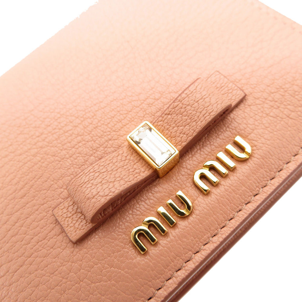 未使用品 ミュウミュウ コンパクト財布 5MV204 二つ折り財布 レザー ピンク 0007【中古】MIUMIU レディース