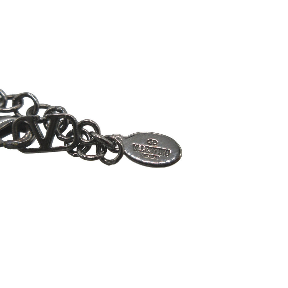 美品 ヴァレンティノ Vロゴ フェイクパール メタル グレー ネックレス 0182【中古】VALENTINO