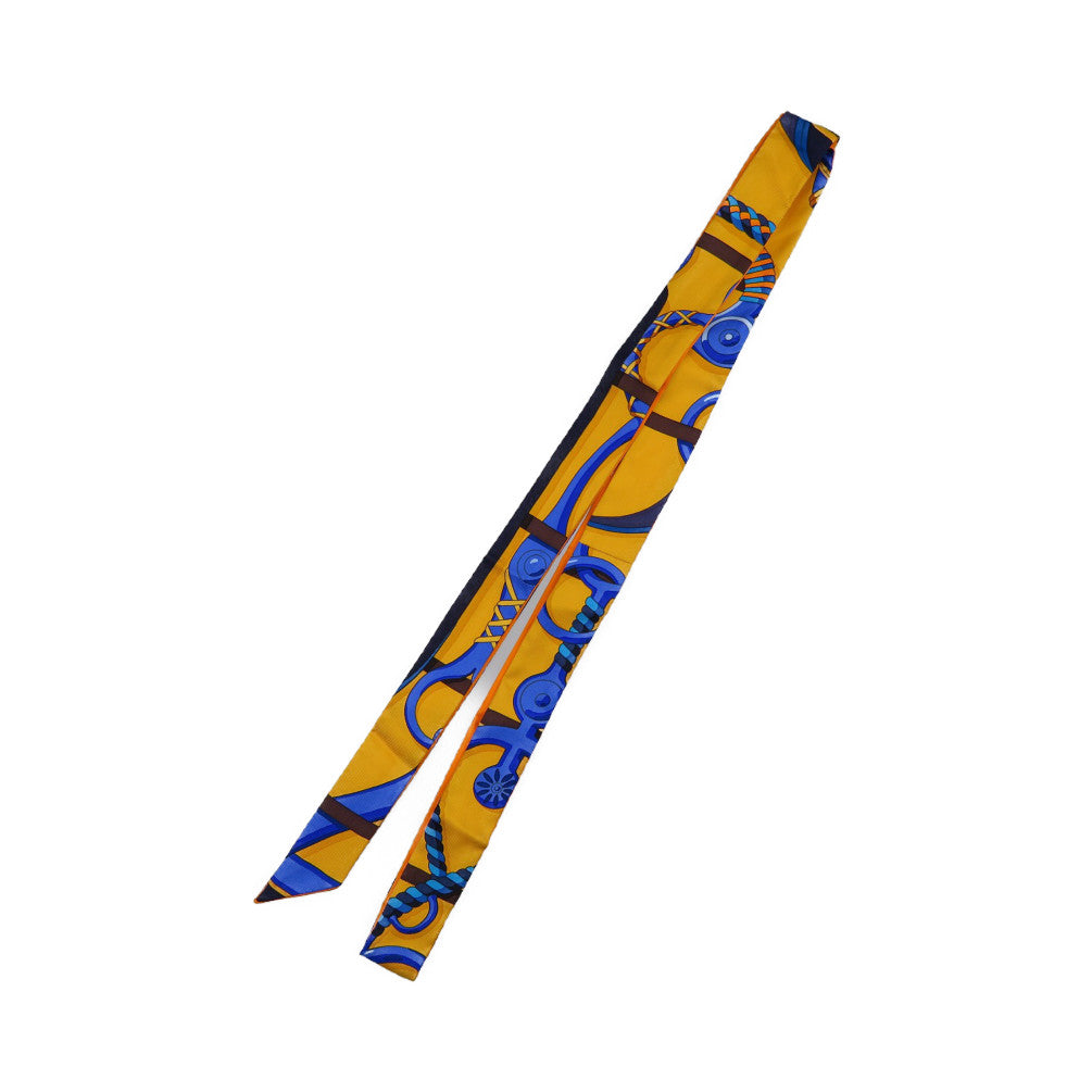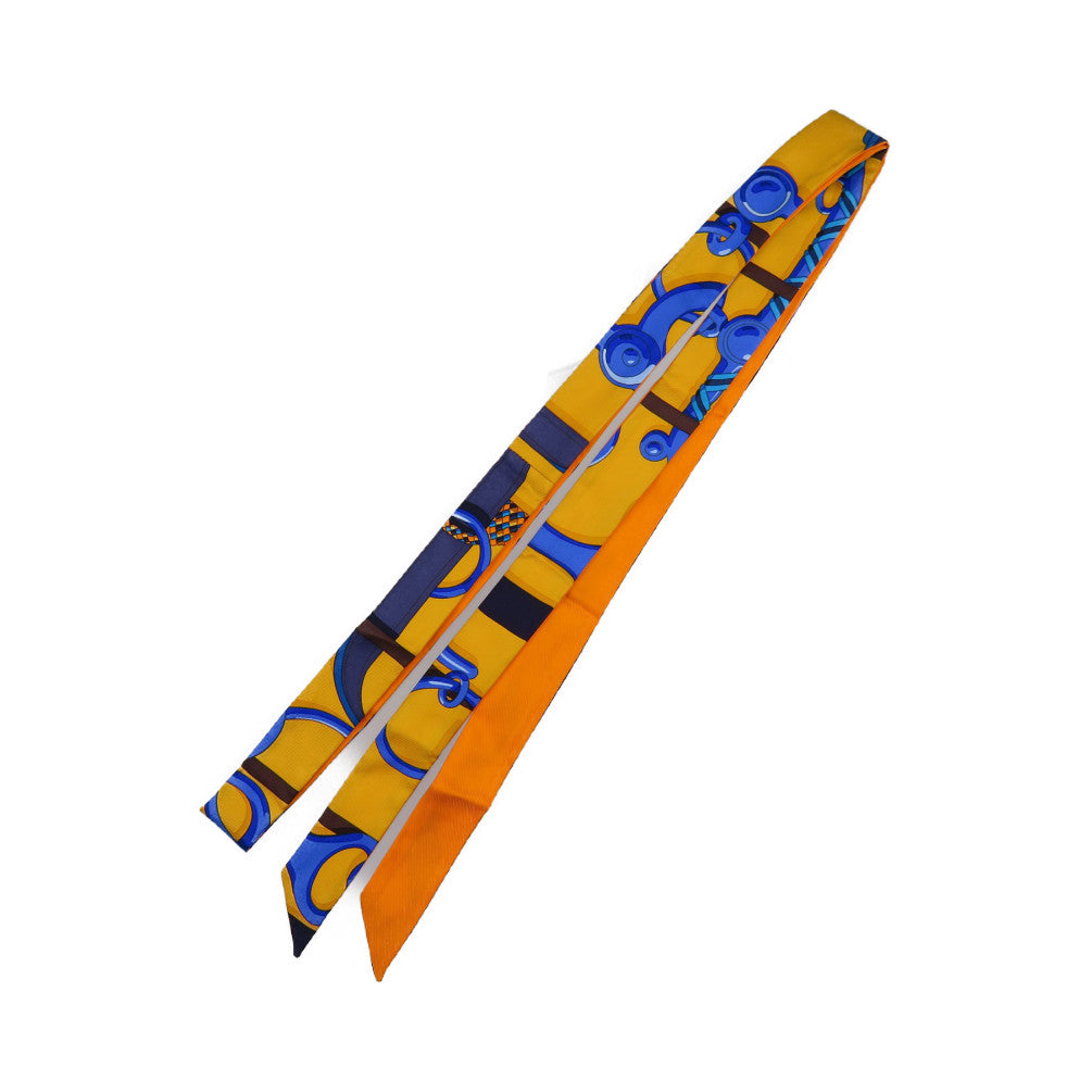 美品 エルメス ツイロン 乗馬の装具一式 シルク オレンジ ブルー スカーフ 0190【中古】HERMES