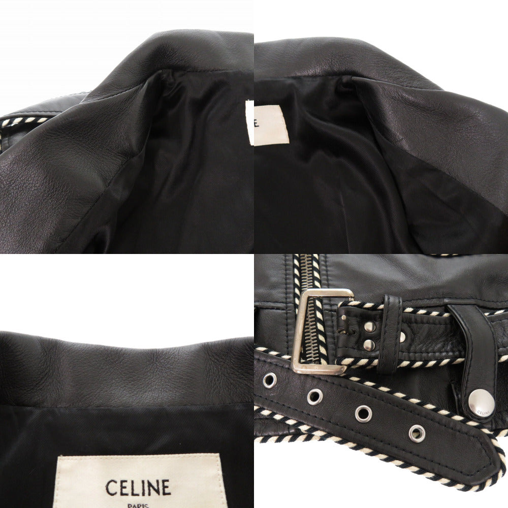 美品 セリーヌ バイ エディスリマン CELINE by Hedi Slimane サイズ50 2E349599E ベイカーダブル ライダースレザージャケット 牛革 ブラック 1559【中古】CELINE