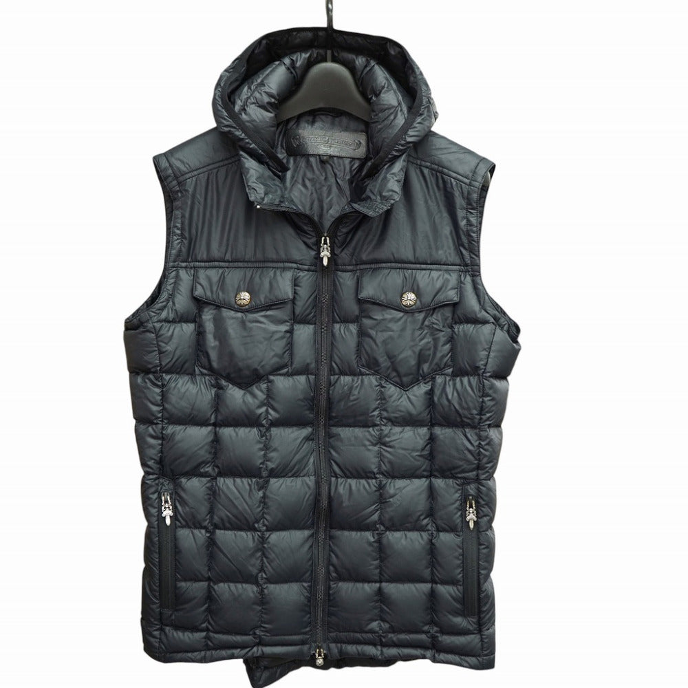 美品 クロムハーツ ダガージップ クロスボタン ダウンベスト ブラック サイズS 黒 フードあり 1144【中古】CHROME HEARTS メンズ
