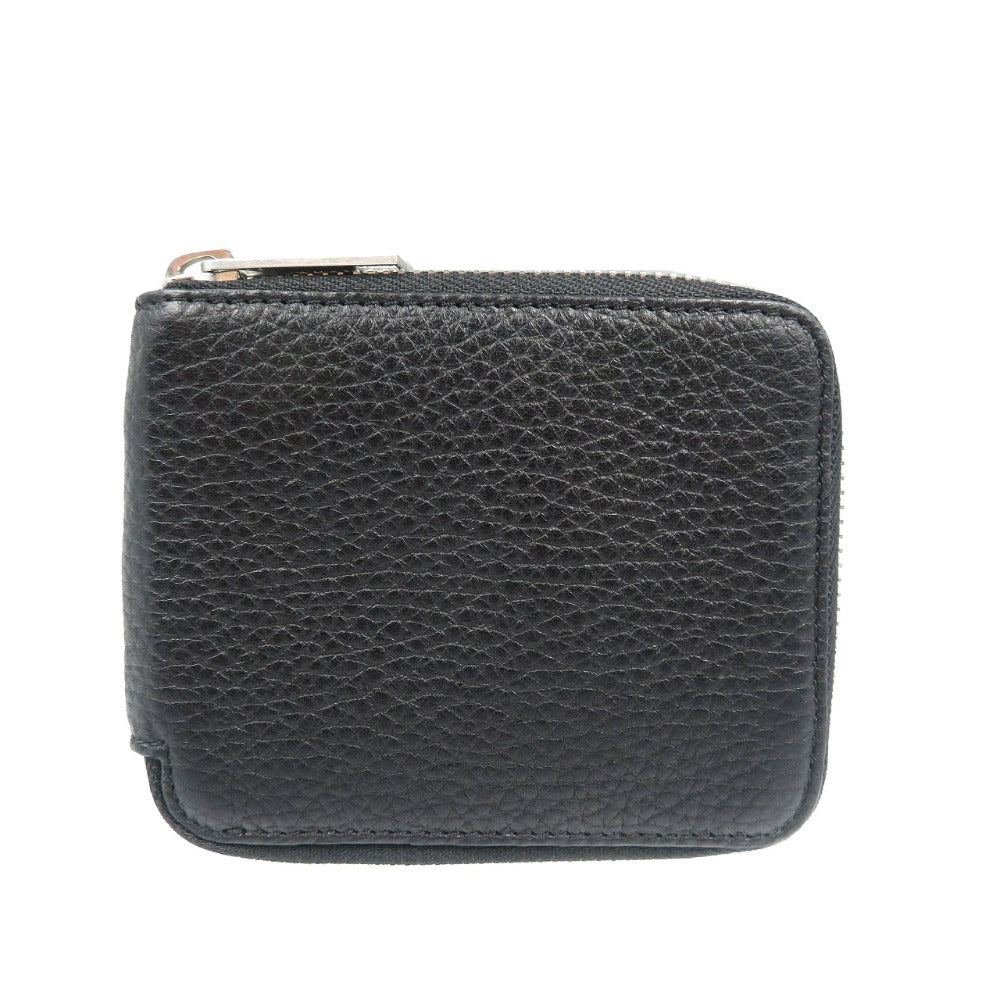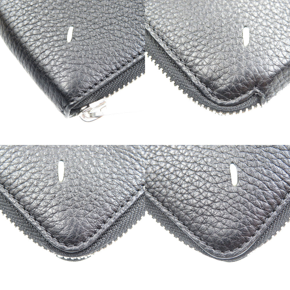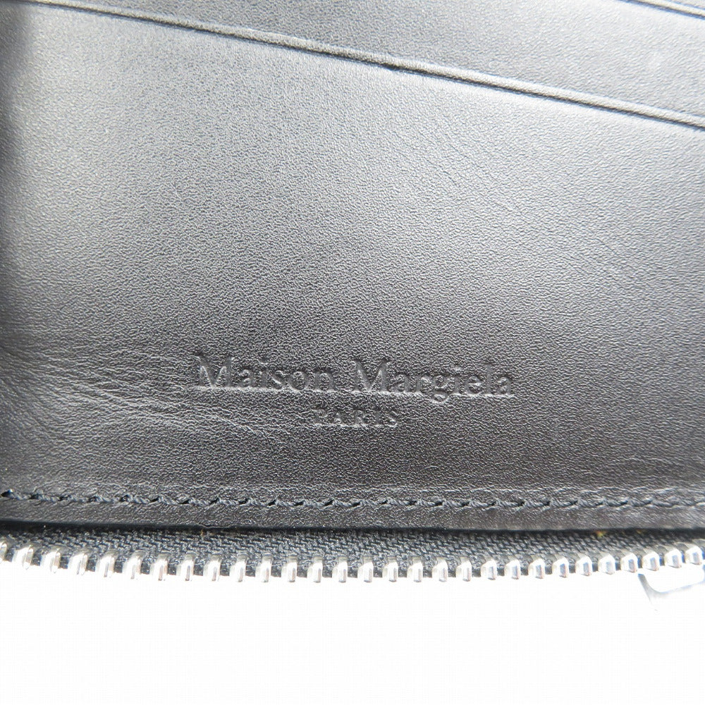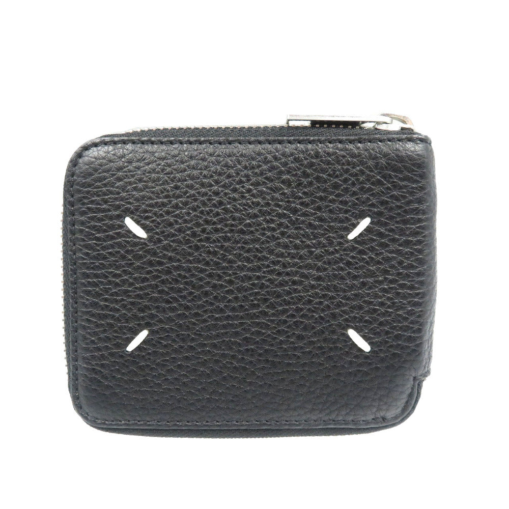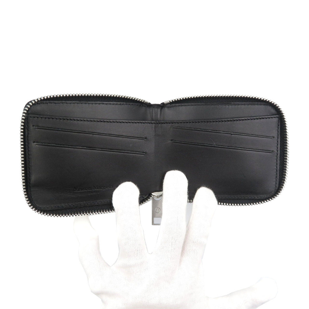 未使用 メゾンマルジェラ 4ステッチ レザー シルバー金具 ブラック 黒 ラウンドファスナー 札入れ 二つ折り財布 1327【中古】MAISON MARGIELA