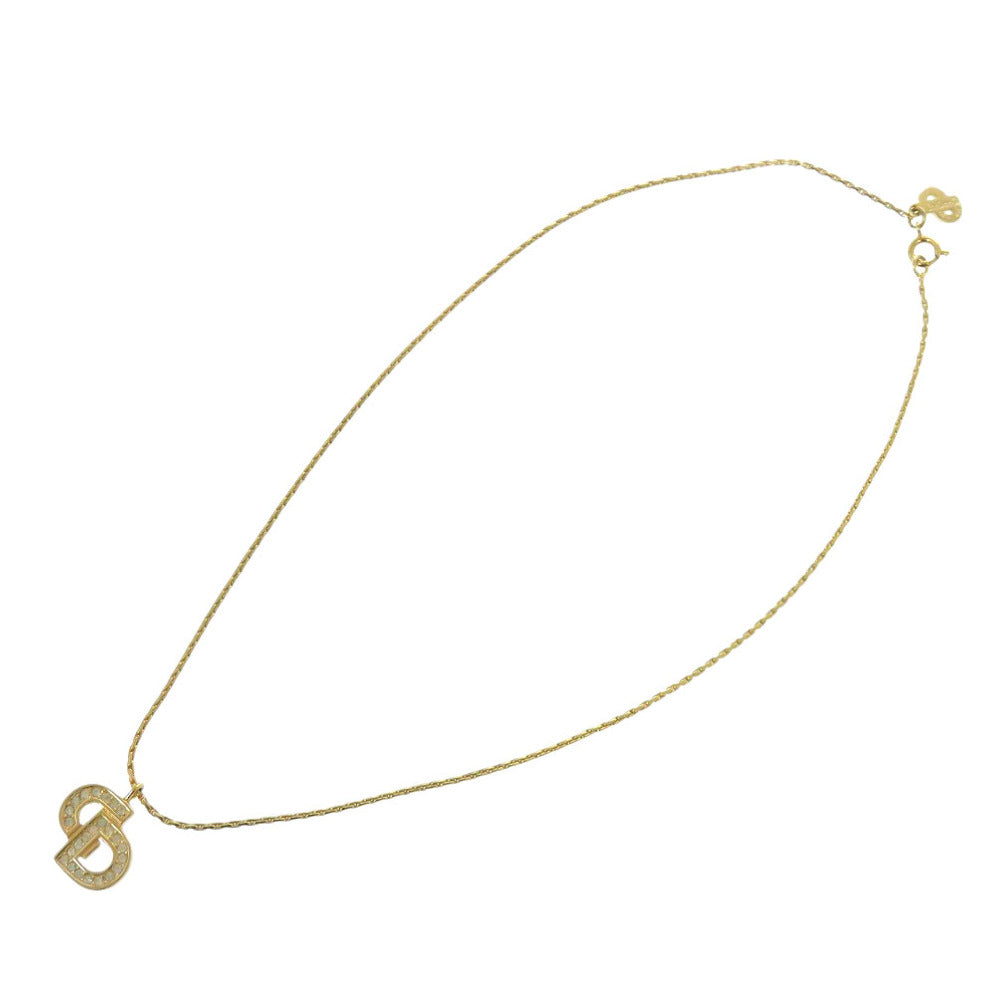 美品 クリスチャンディオール ロゴ ラインストーン GP ゴールド ネックレス 0412【中古】Christian Dior
