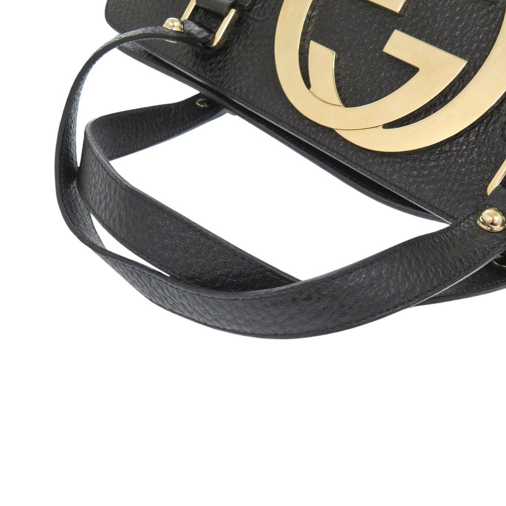 美品 グッチ インターロッキング シェリーレザー ブラック ハンドバッグ 黒 1311【中古】GUCCI
