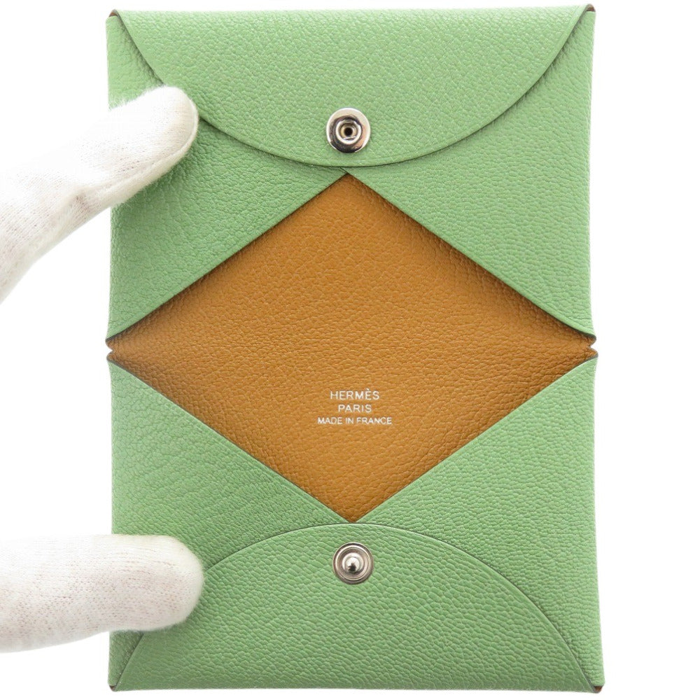 新品同様 エルメス カルヴィ シェーブル ヴェールクリケット シルバー金具 B刻印(2023年製) カードケース 緑 0698【中古】HERMES