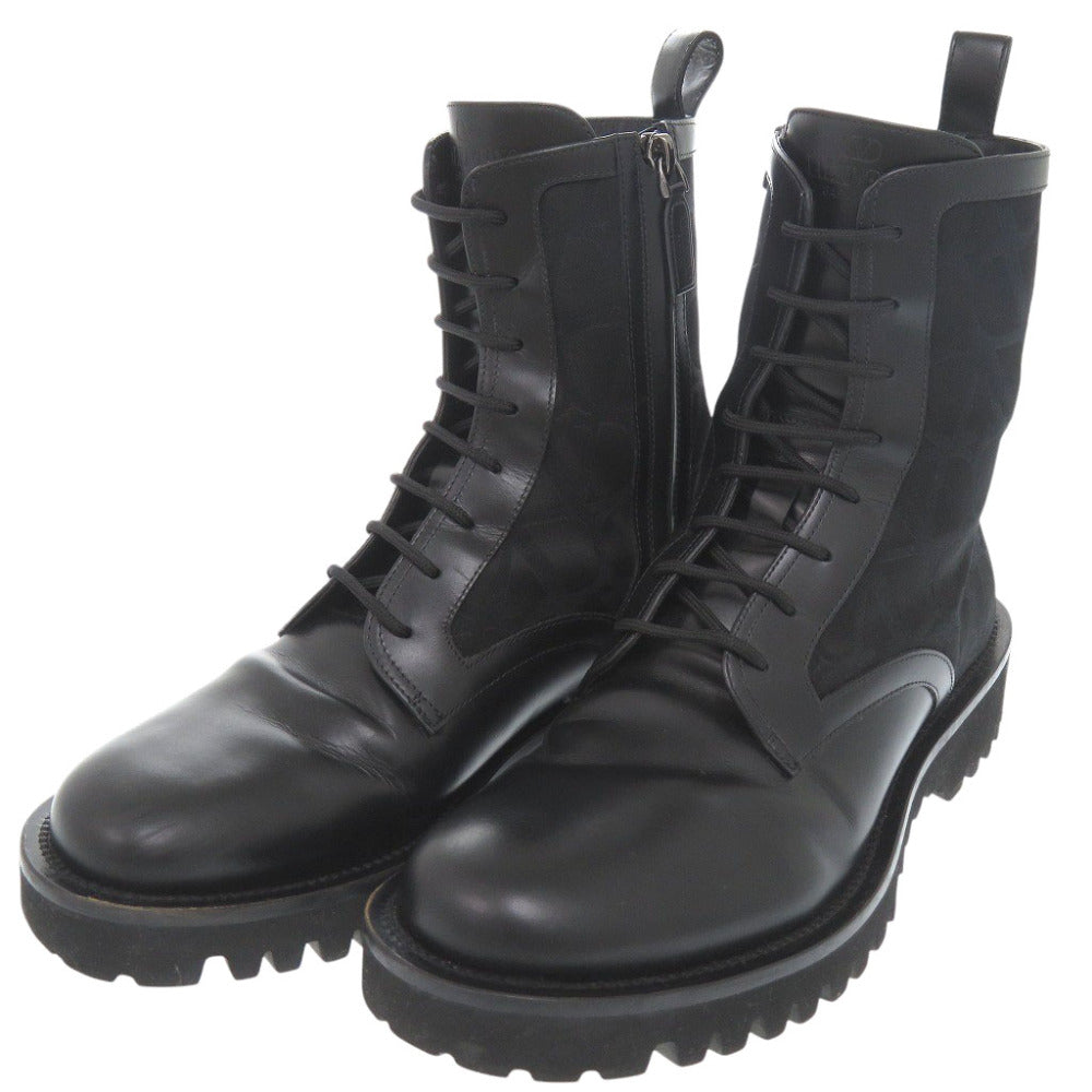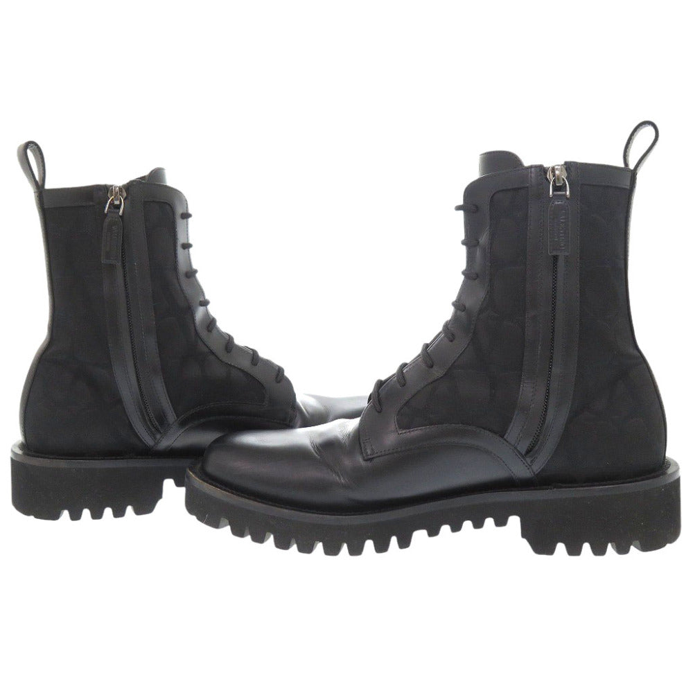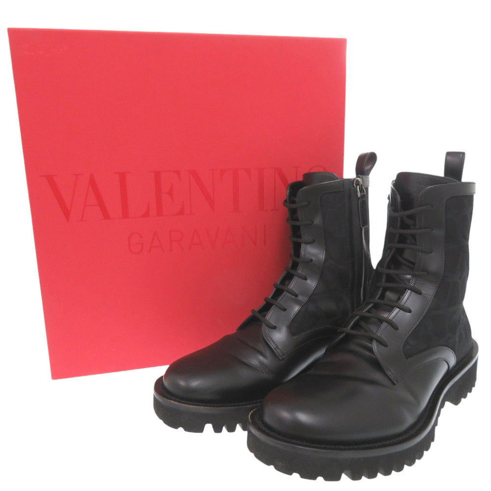 美品 ヴァレンティノ ガラヴァーニ トワル イコノグラフ レザー ポリエステル コットン ブラック ジップアップブーツ 1844【中古】Valentino Garavani メンズ