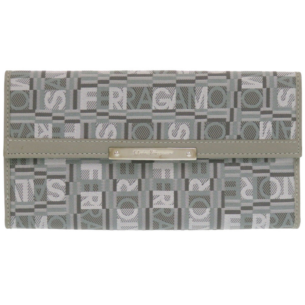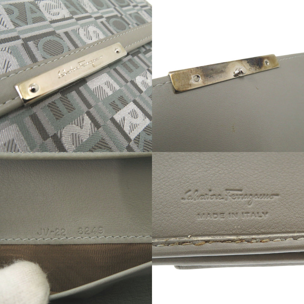 美品 サルヴァトーレフェラガモ JV-22 8249 レザー/キャンバス グレー 長財布 0072【中古】Salvatore Ferragamo