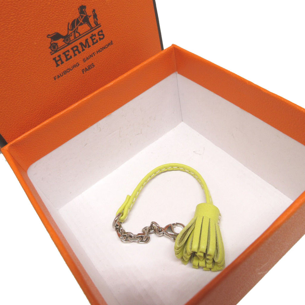 美品 エルメス カルメンチータ グランポンポン20 フリンジ アニューミロ ライム バッグチャーム キーホルダー 0729【中古】HERMES