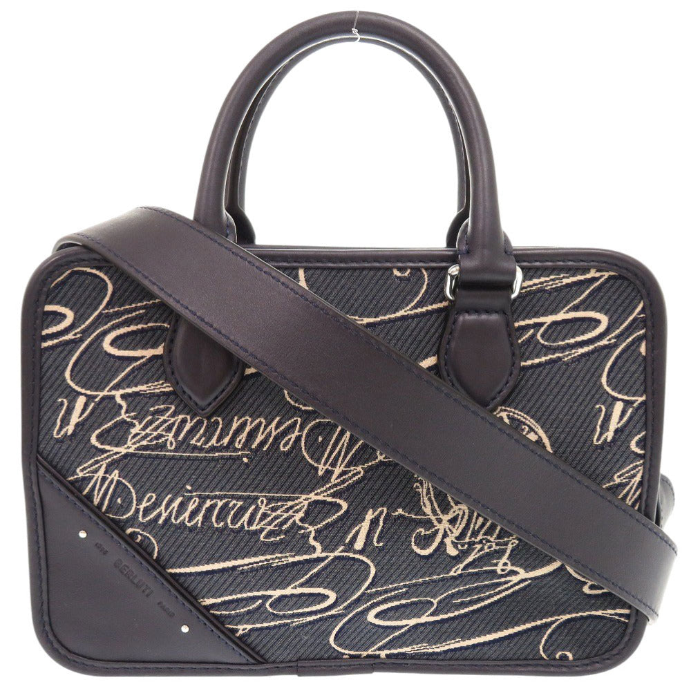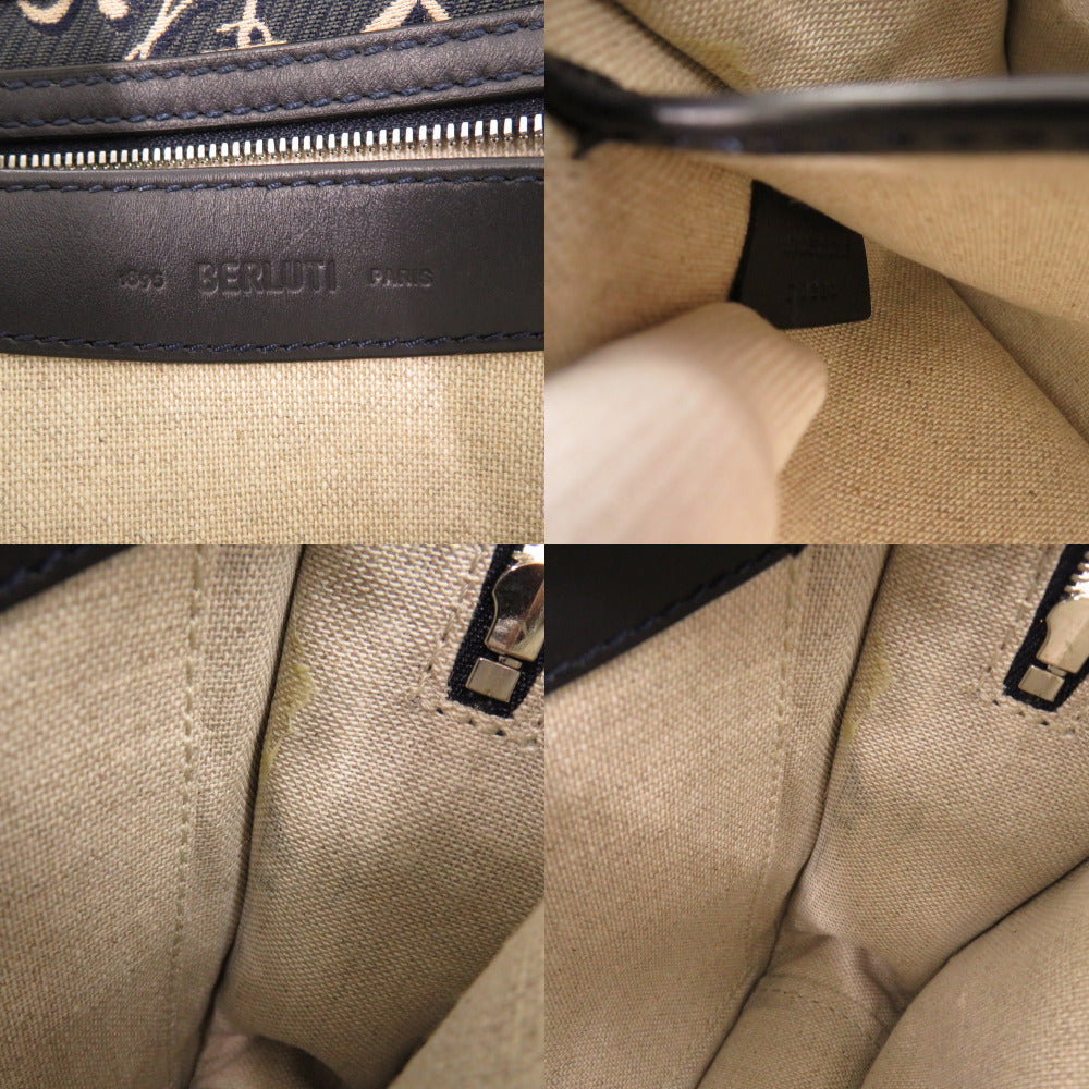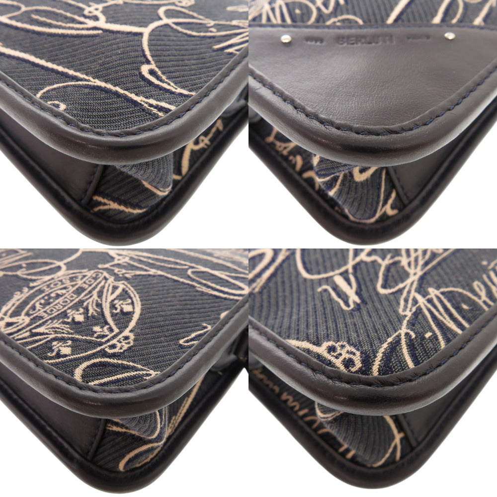 美品 ベルルッティ アンジュール ガリバー スクリットアラベスクキャンバス メッセンジャー アラベスクキャンバス レザー ネイビーブルー 2WAY ショルダー ハンドバッグ 0748【中古】BERLUTI メンズ
