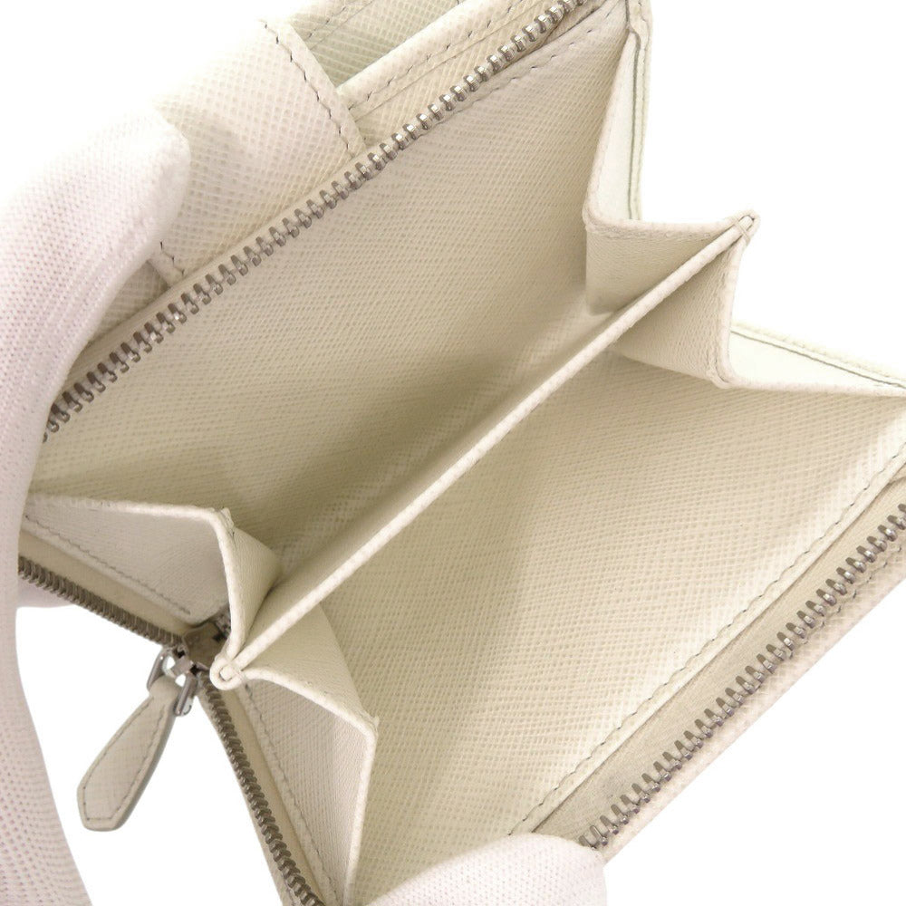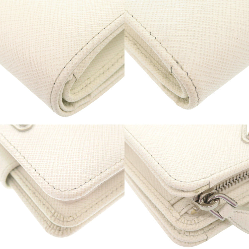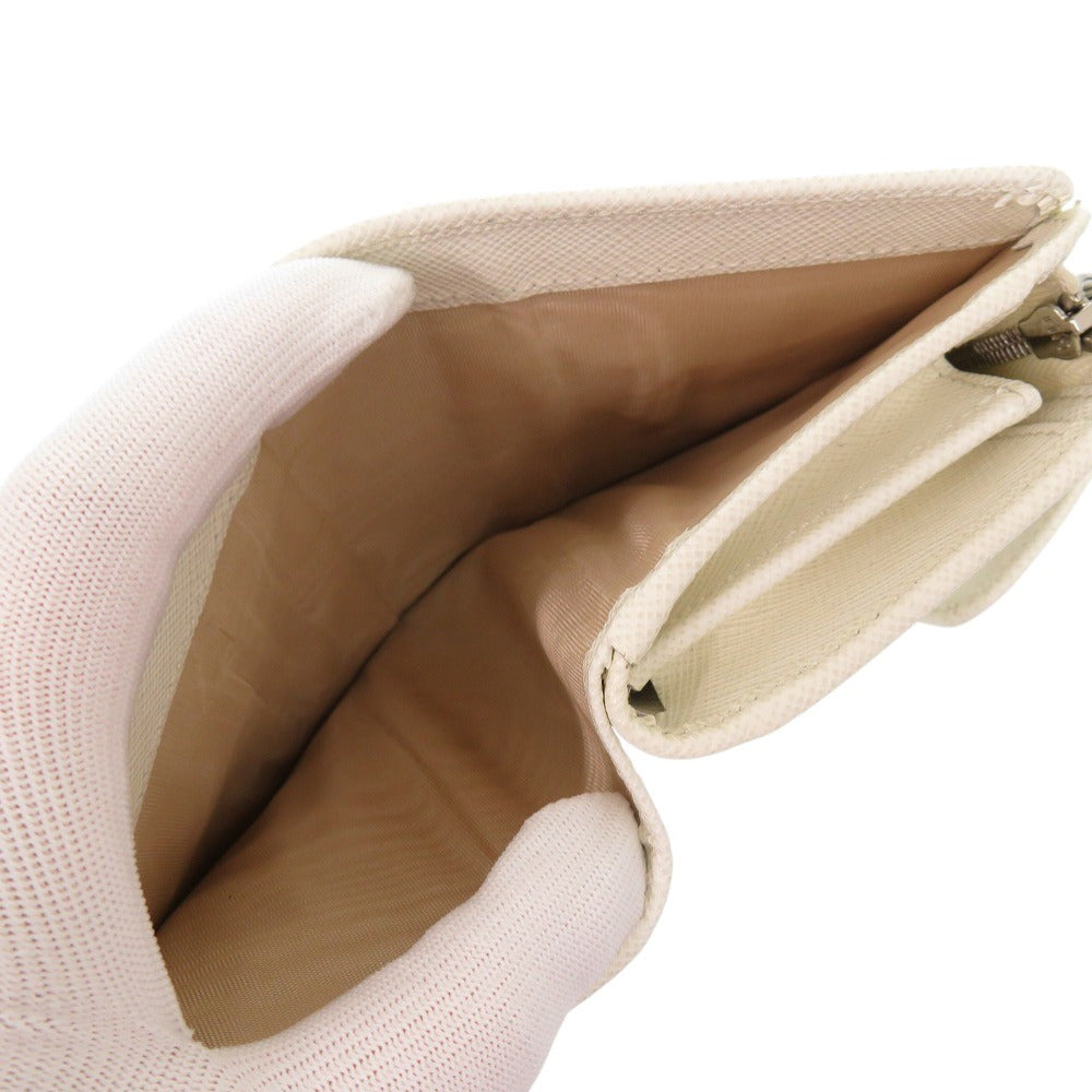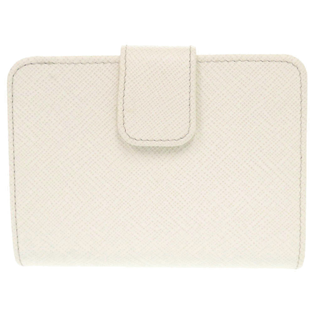 美品 プラダ サフィアーノトライアングル レザー ホワイト 二つ折り財布 白 0465【中古】PRADA