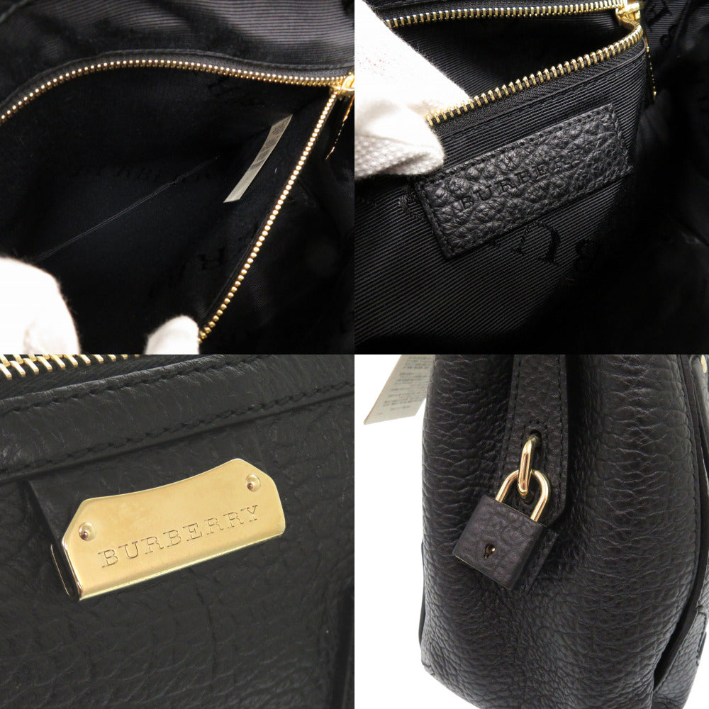 新品同様 バーバリー レザー ブラック 2WAY ハンドバッグ ショルダーバッグ 黒 1242【中古】BURBERRY