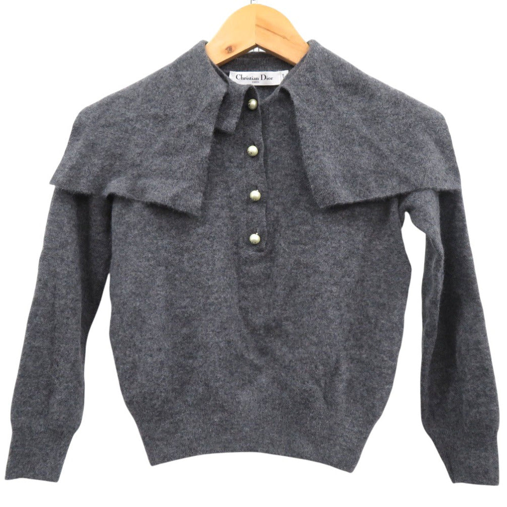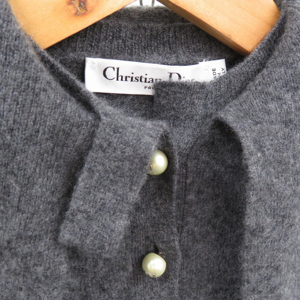 美品 クリスチャンディオール カシミヤ ニット パールボタン 長袖 354S48AM053 セーター グレー 1375【中古】Christian Dior