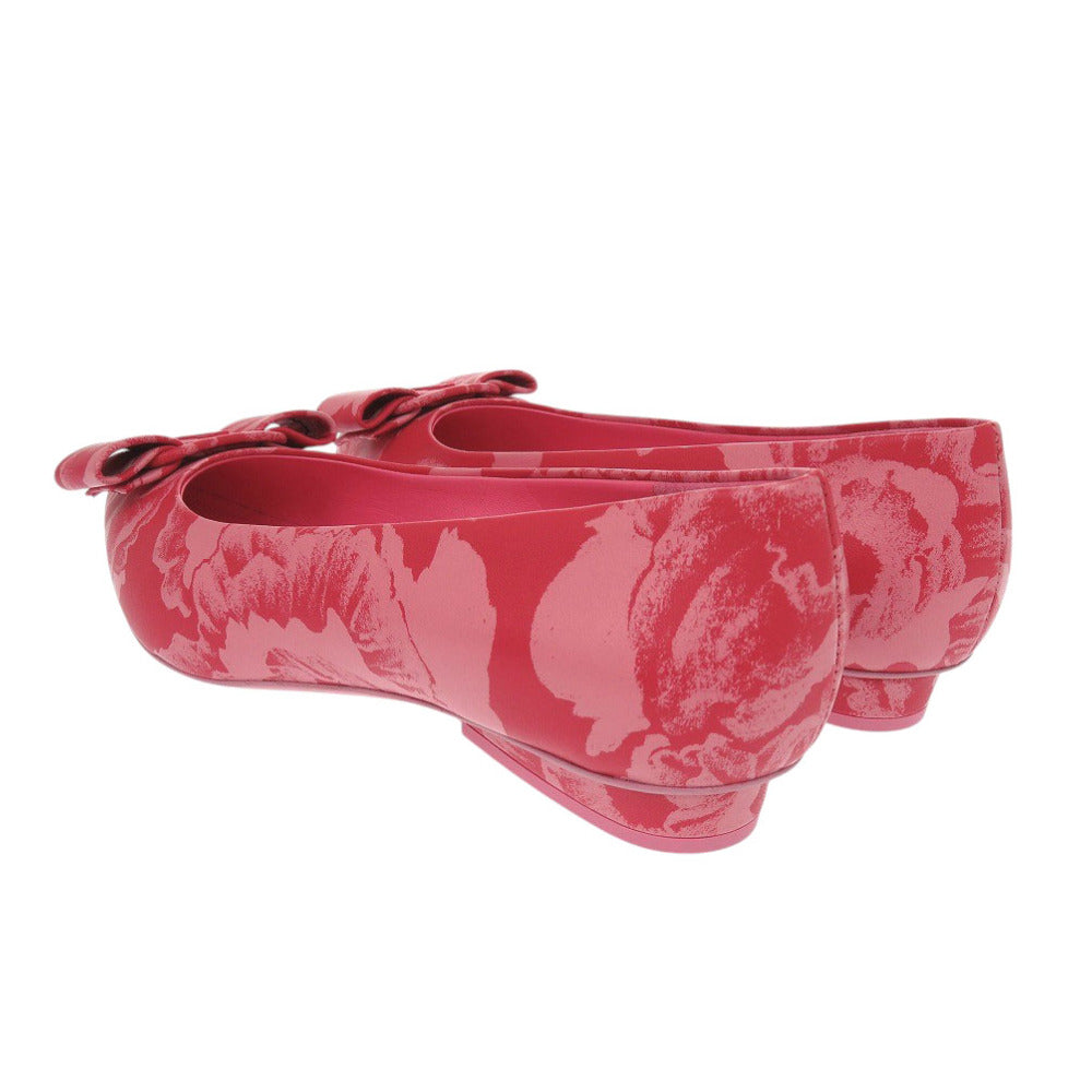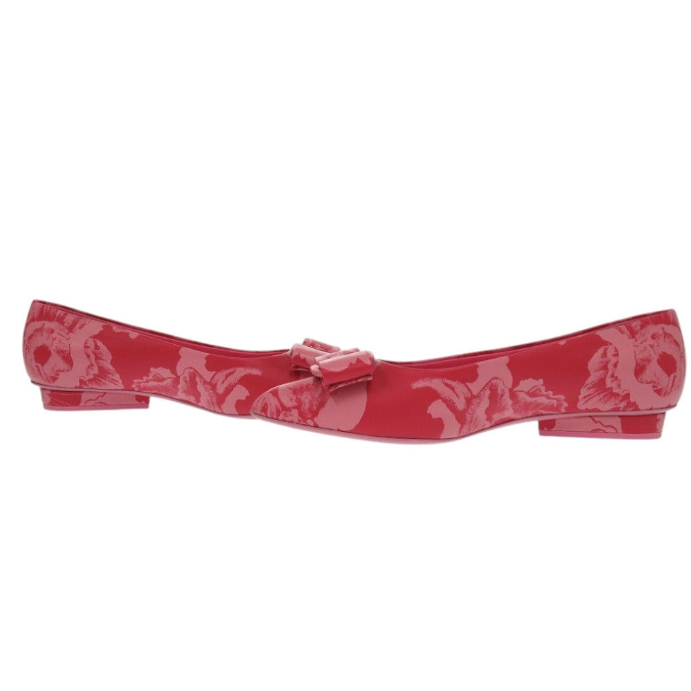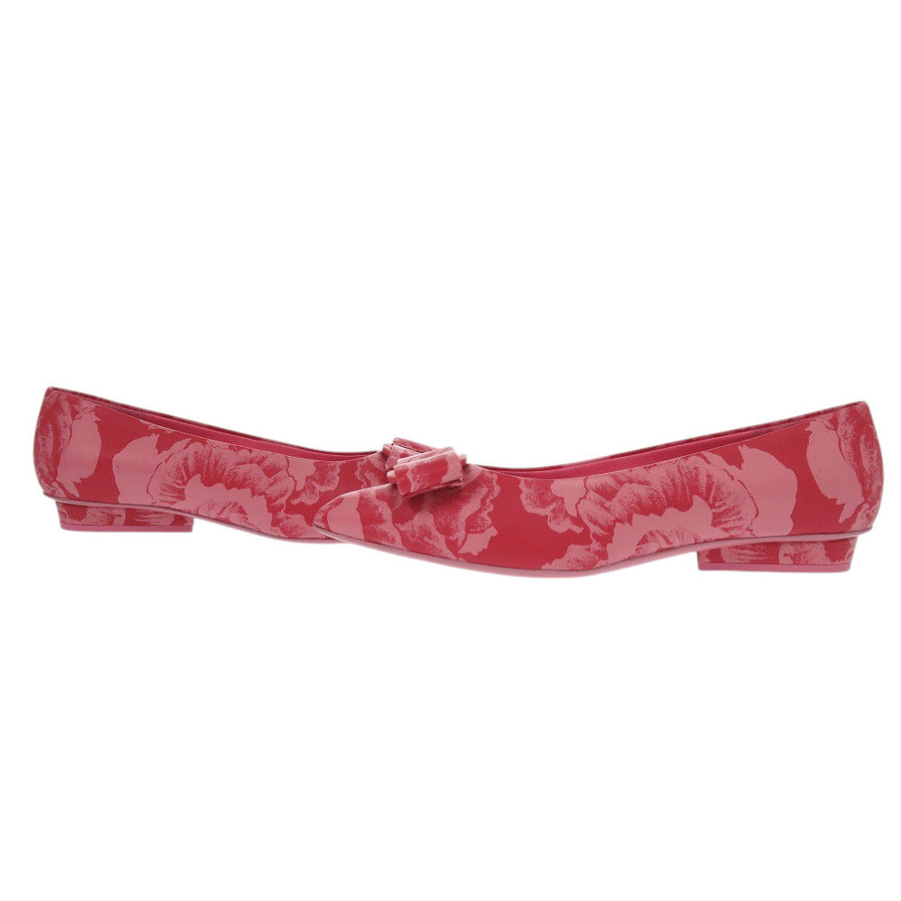 未使用 サルヴァトーレフェラガモ VIVA フラットシューズ ハイビスカス ラムスキン ピンク パンプス 0454【中古】Salvatore Ferragamo