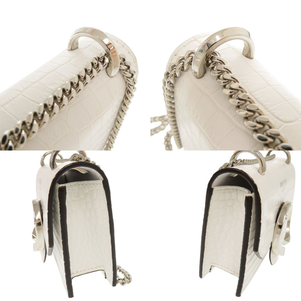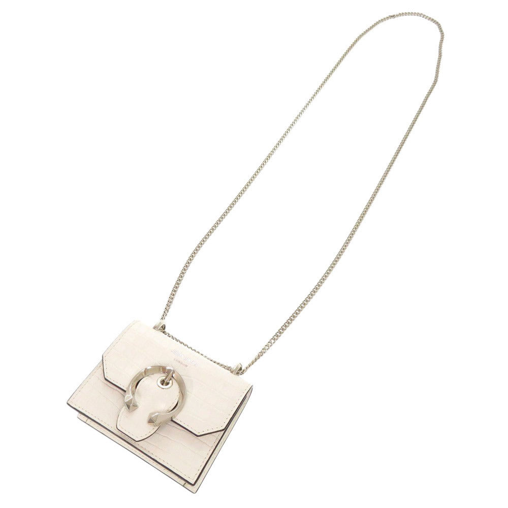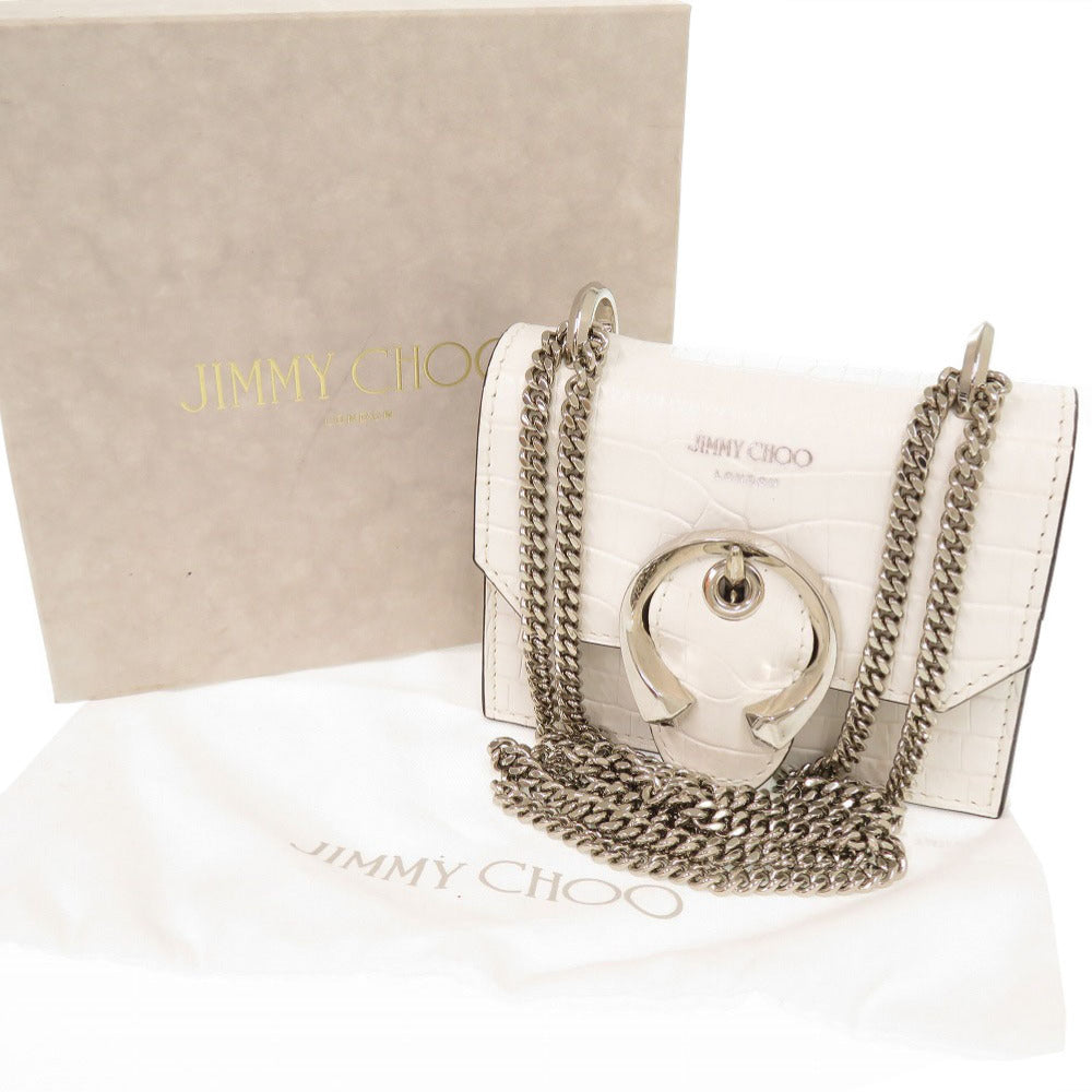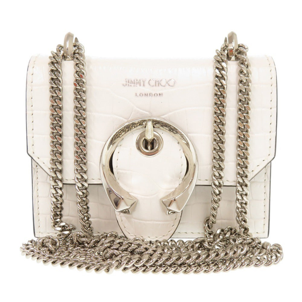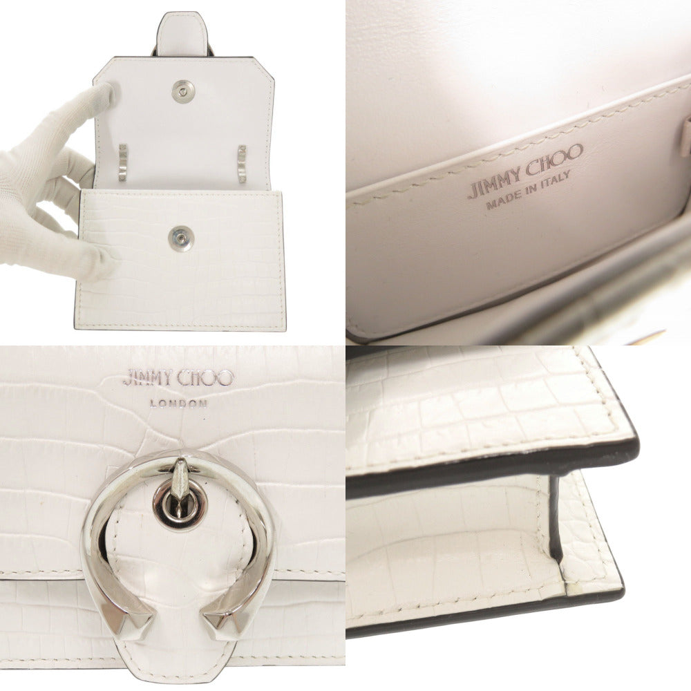 新品同様 ジミーチュウ ミニパリス クロコ型押しレザー ホワイト チェーンショルダーバッグ ショルダーバッグ 0475【中古】JIMMY CHOO