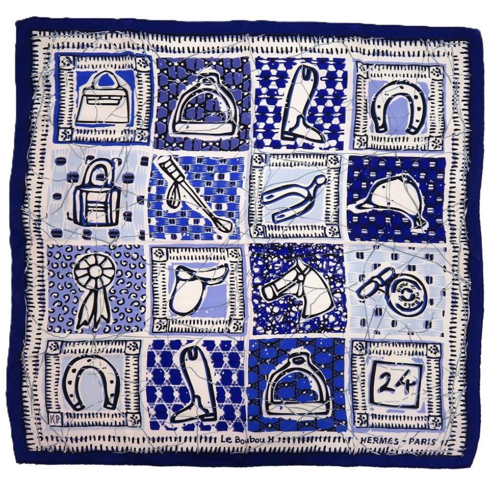 美品 エルメス カレ70 Le Boubou ブーブー シルク ブルー 青 スカーフ 0190【中古】HERMES