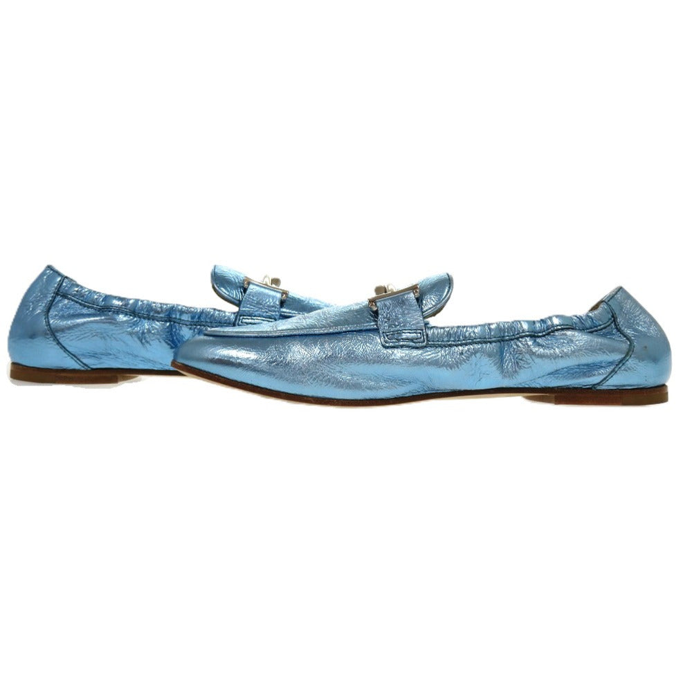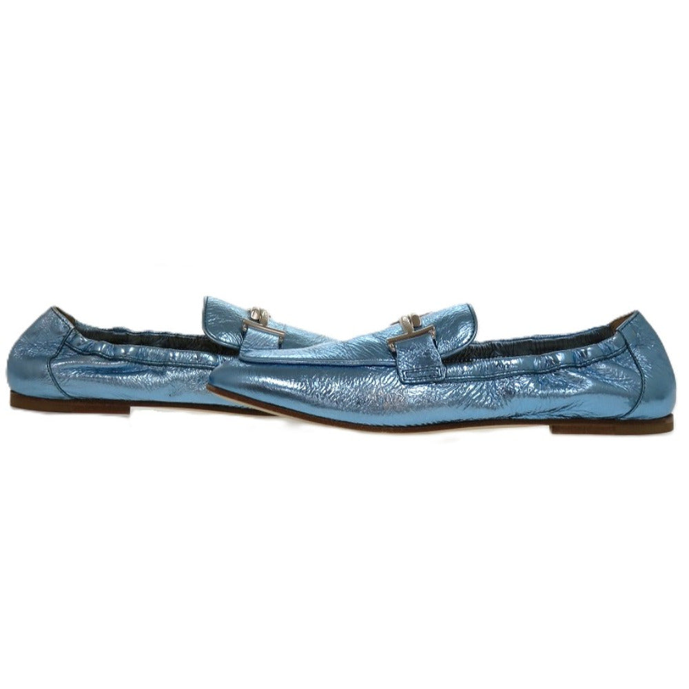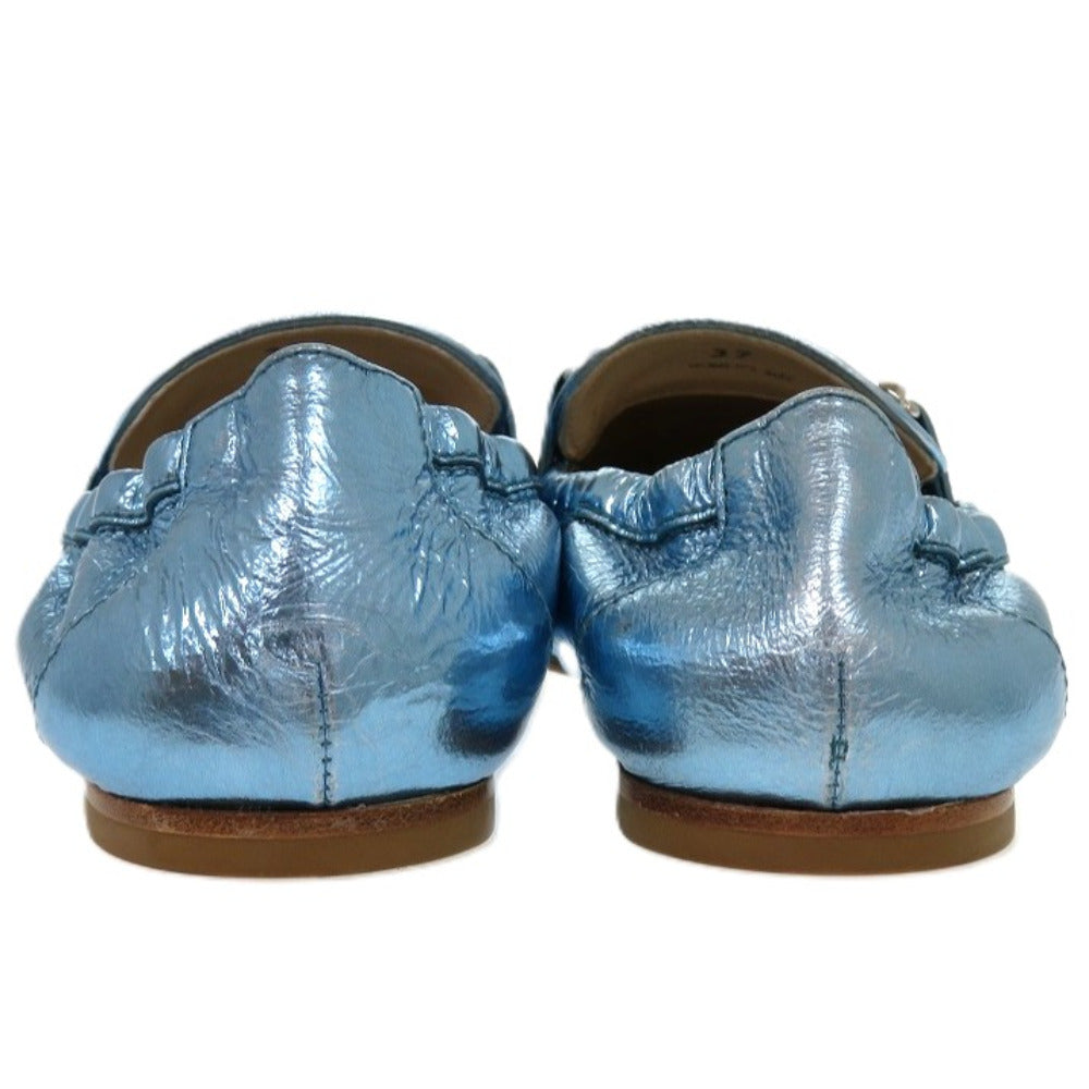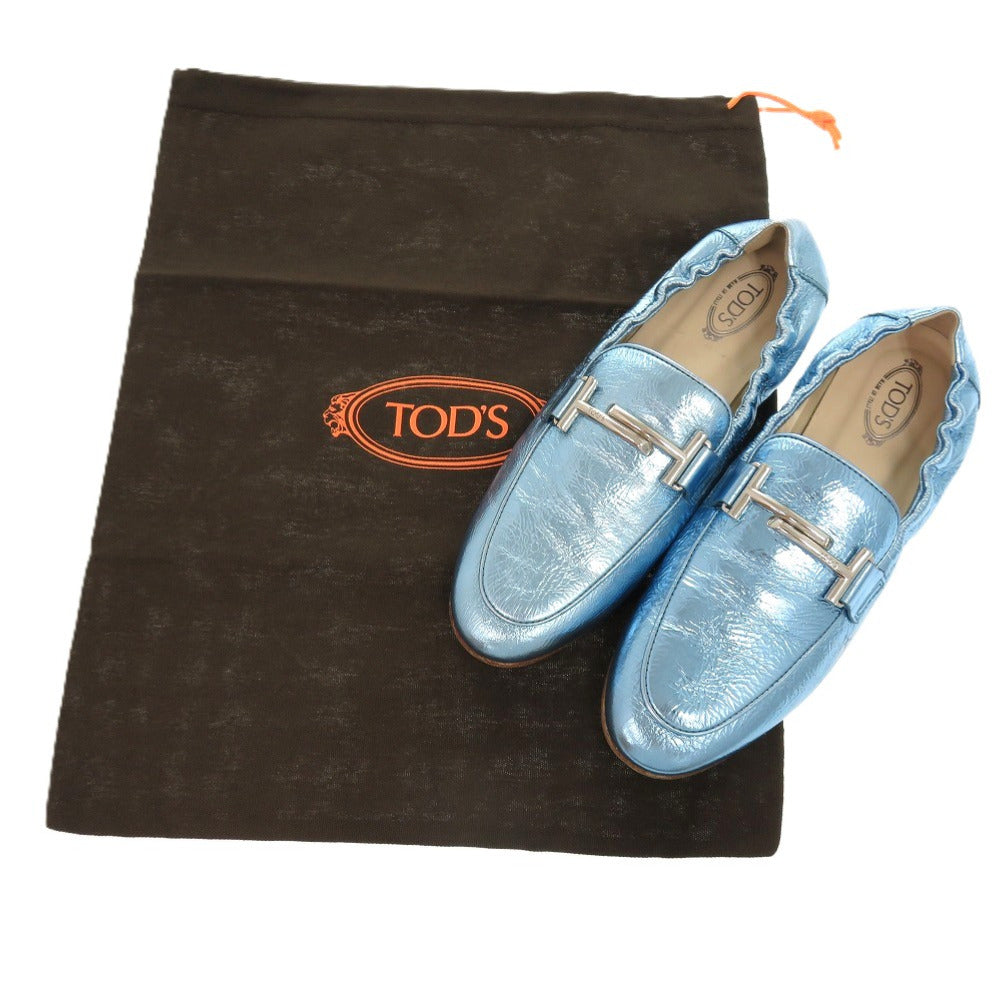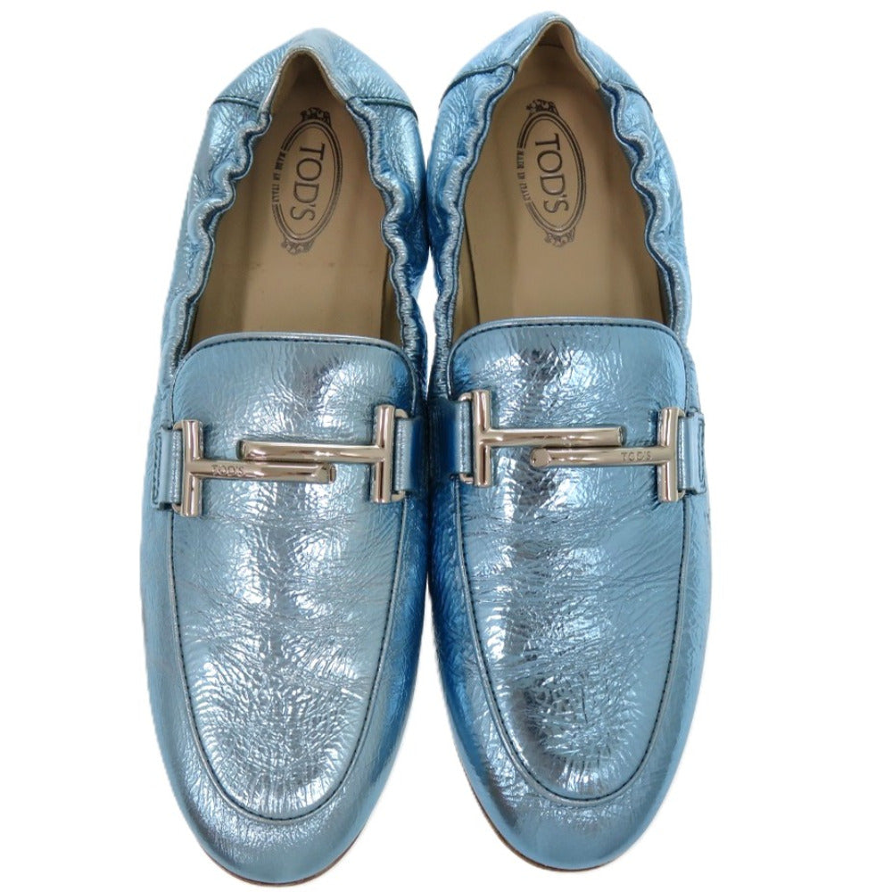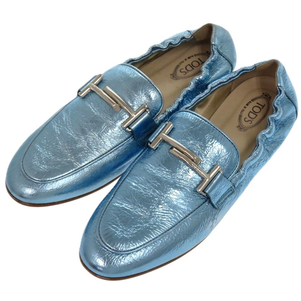未使用品 トッズ T TIMELESS Tタイムレス ダブルT XXW79A0X010YF3 レザーシューズ レザー メタリックレザー ブルー 青 ローファー 1604【中古】TOD’S