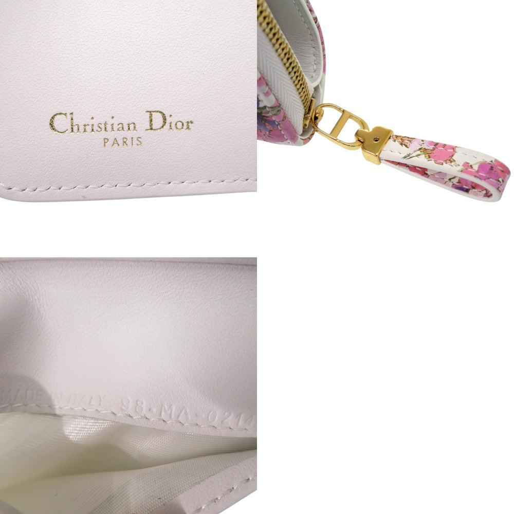 美品 クリスチャンディオール Caro スカーレット フラワー 98 MA 0214 カーフ ホワイト 白 二つ折り財布 0438【中古】Christian Dior