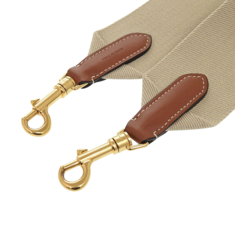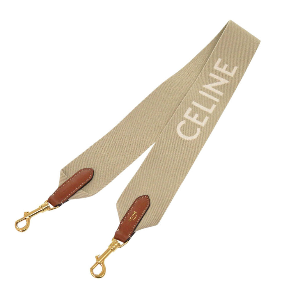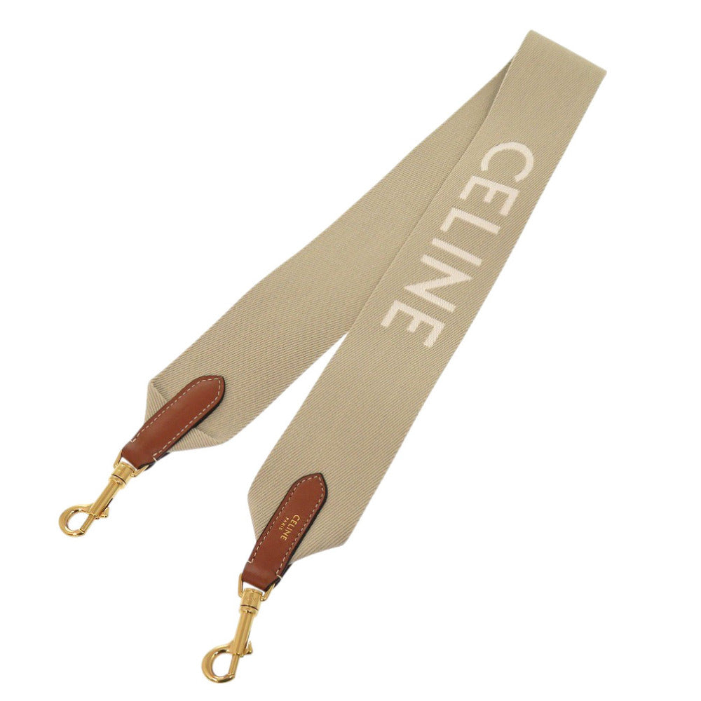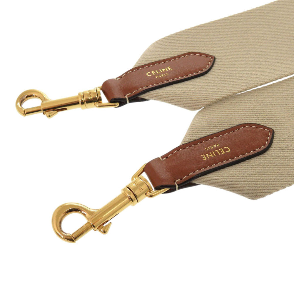 新品同様 セリーヌ ジャガード ショートストラップ 49S022 キャンバス レザー ベージュ ショルダーストラップ 0232【中古】CELINE