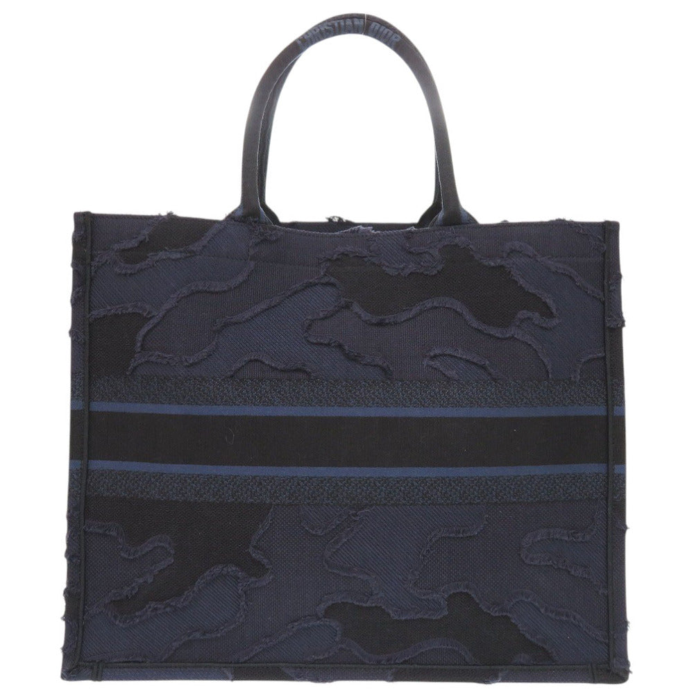 美品 クリスチャンディオール 2020年 リゾートコレクション ブックトート ラージ カモフラージュ キャンバス ネイビー トートバッグ 0707【中古】Christian Dior