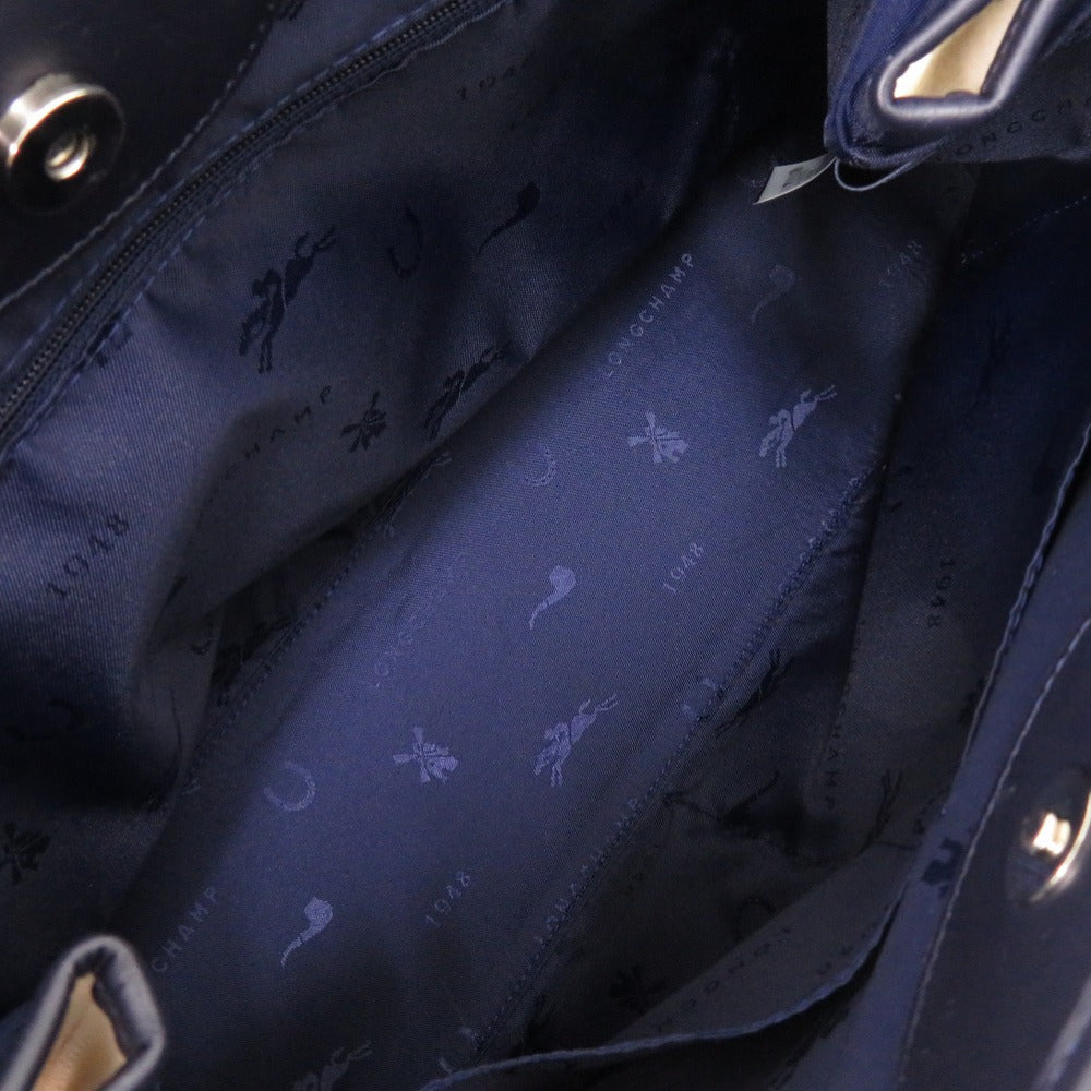 美品 ロンシャン ロゾ 1681643733 キャンバス レザー アイボリー トートバッグ 1279【中古】Longchamp