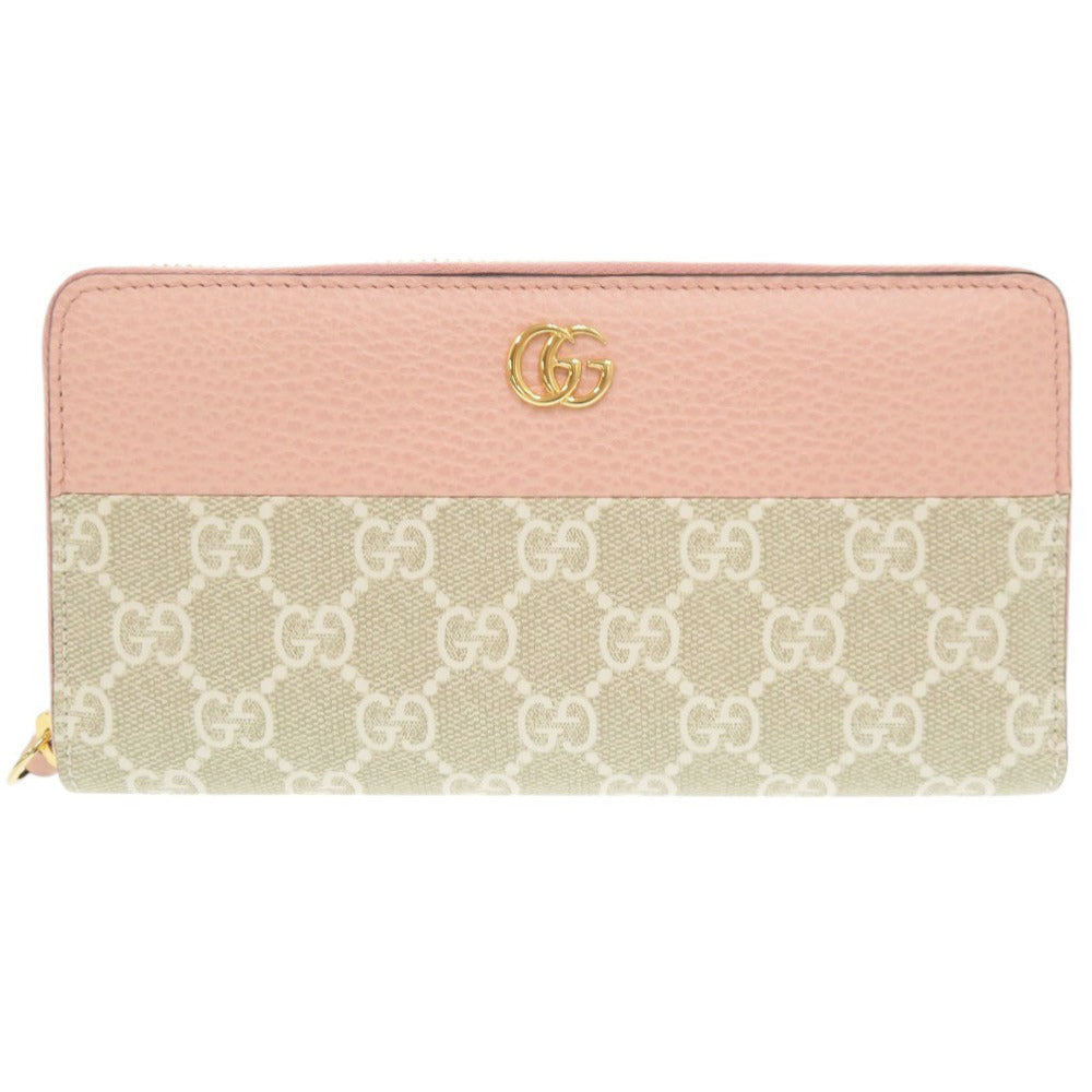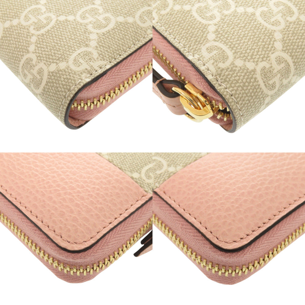 未使用品 グッチ ダブルG バイカラー ジップアラウンドウォレット 456117 GGスプリームキャンバス レザー ライトピンク ベージュ 長財布 1496【中古】GUCCI