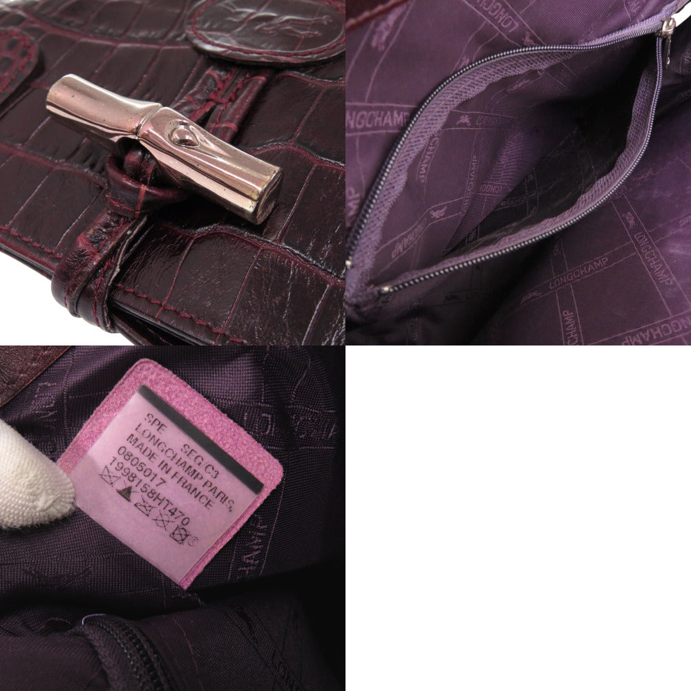 美品 ロンシャン ロゾ 1998 158HT 型押しレザー ボルドー ハンドバッグ 1728【中古】Longchamp