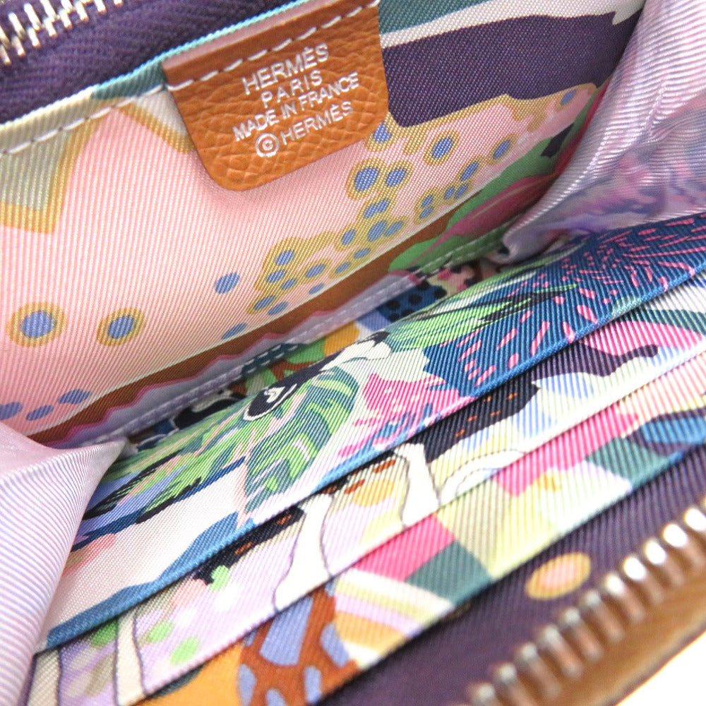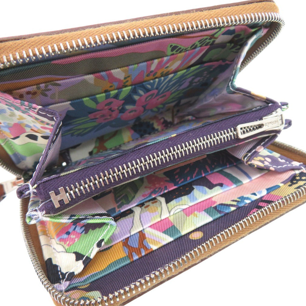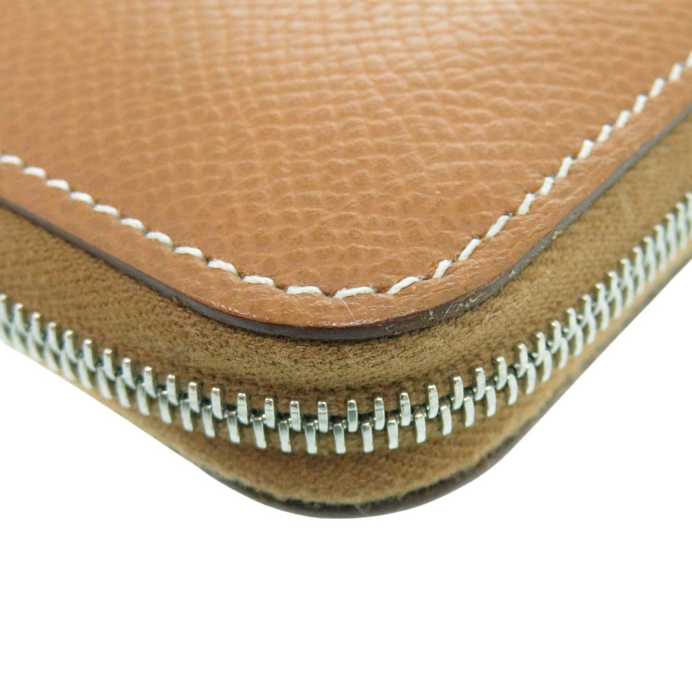 エルメス アザップコンパクト シルクイン ゴールド ラウンド財布 レザー ブラウン W刻印 1635【中古】HERMES